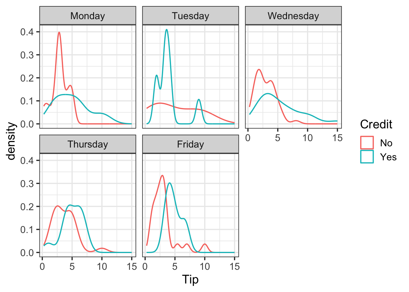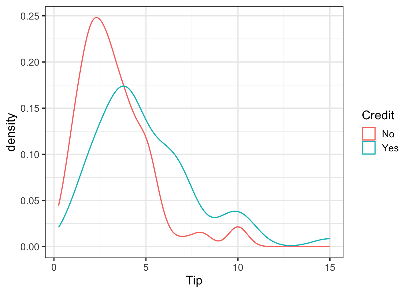 geom_density(aes(x = Tip, color = Credit)) +