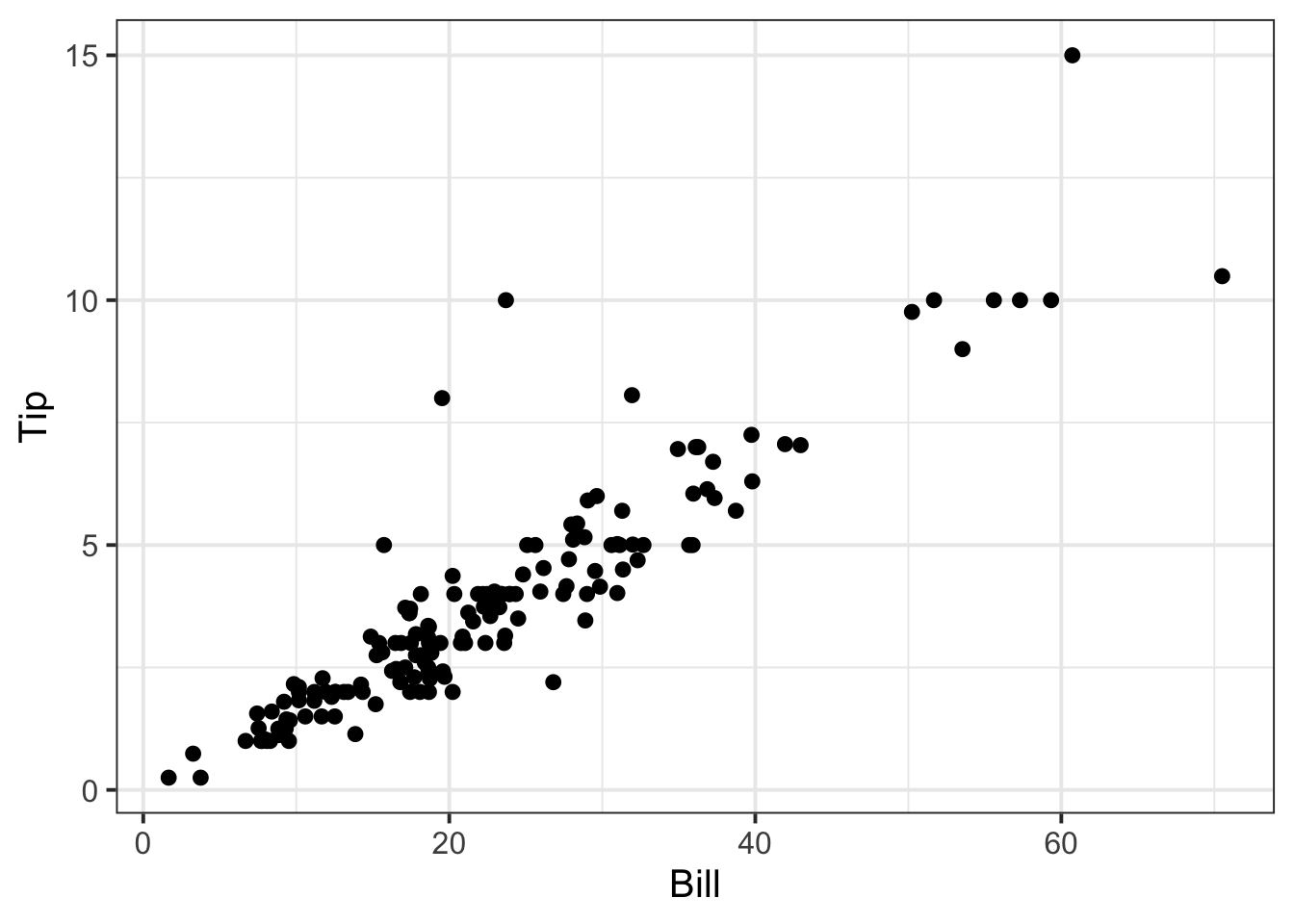 ggplot(tips, aes(x = Bill, y = Tip)) +