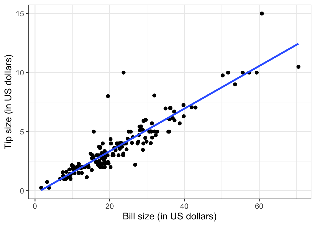 labs(x = "Bill size (in US dollars)",