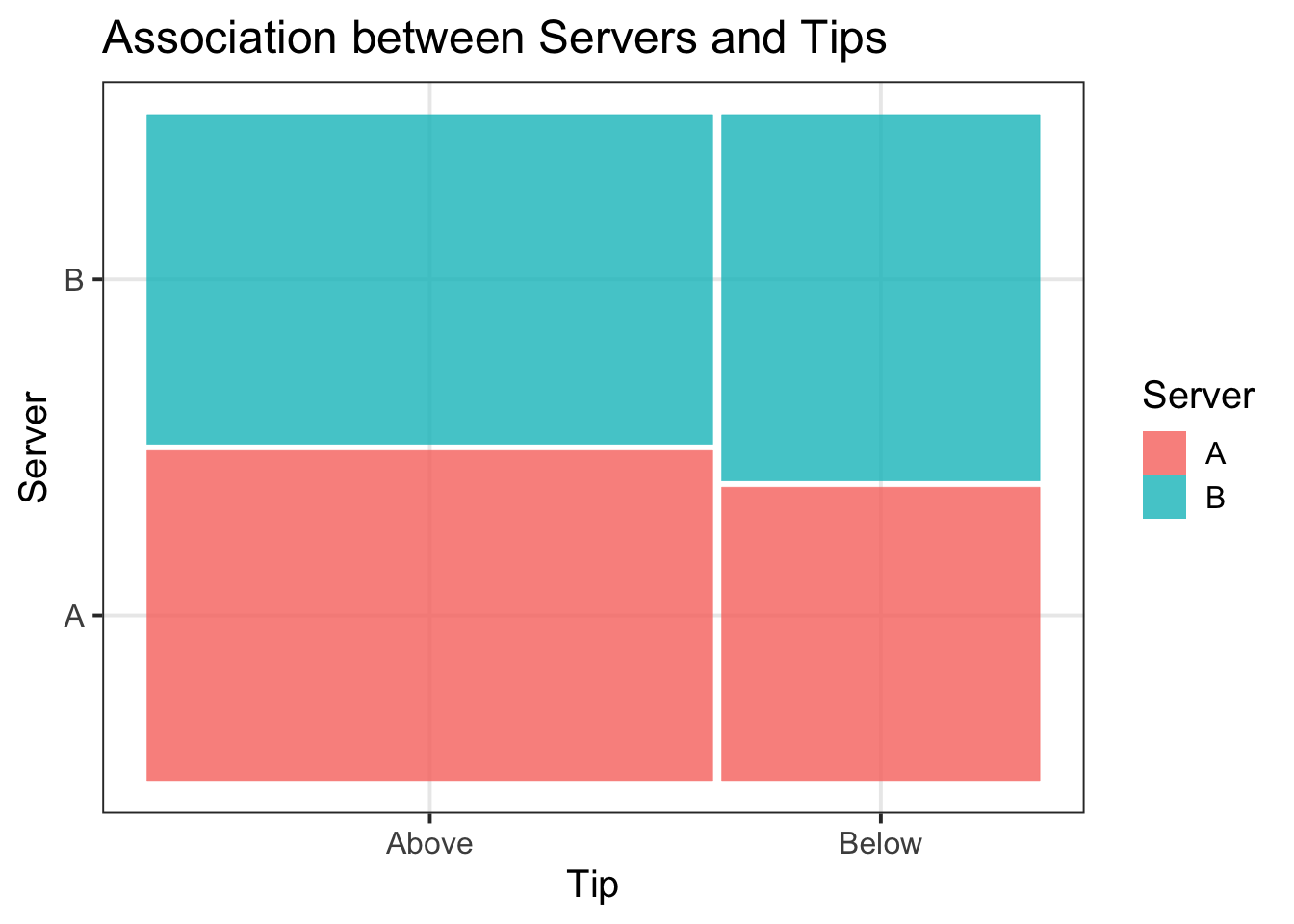 labs(title = "Association between Servers and Tips", x = "Tip", y = "Server")