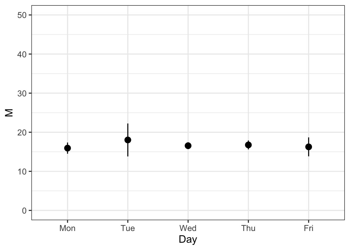 geom_pointrange(aes(x = Day, y = M,
