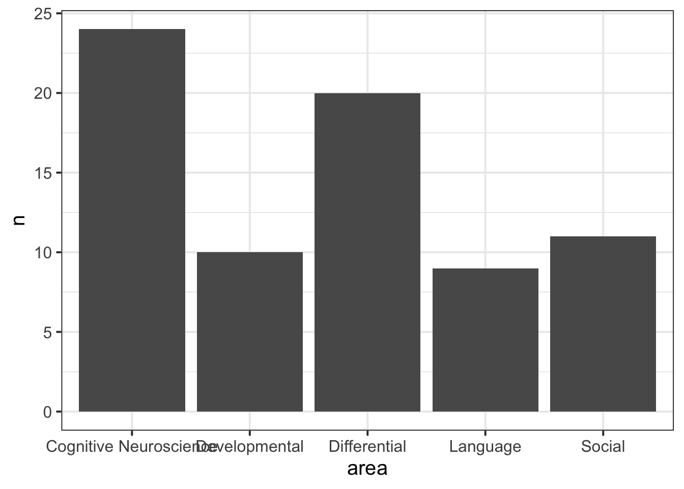 Supposing that we have surveyed the people working in a psychology department and asked them what sub-discipline of psychological research they most strongly identify as working within (If you would like to work along with the reading, the data is available at https://uoepsy.github.io/data/psych_survey.csv).