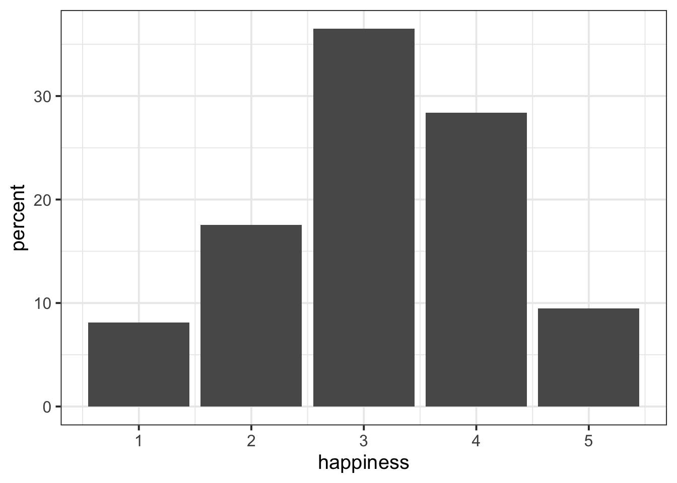 ggplot(data = freq_table2, aes(x = happiness, y = percent)) +