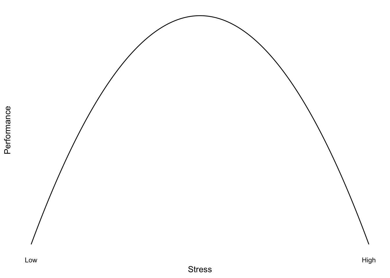 For example, it is often suggested that for difficult tasks, some amount of stress may improve performance (but not too little or too much). We might think of the relationship between performance and stress as a curve (Figure 1).