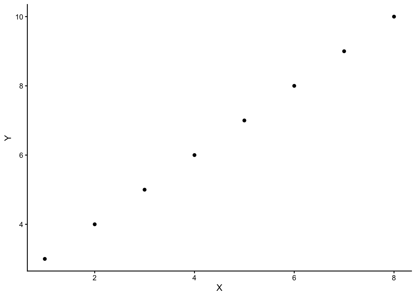 \[x=\begin{bmatrix} 1 \\ 2 \\ 3 \\ 4 \\ 5 \\ 6 \\ 7 \\ 8 \\ \end{bmatrix}, \qquad y=\begin{bmatrix} 3 \\ 4 \\ 5 \\ 6 \\ 7 \\ 8 \\ 9 \\ 10 \\ \end{bmatrix}\]