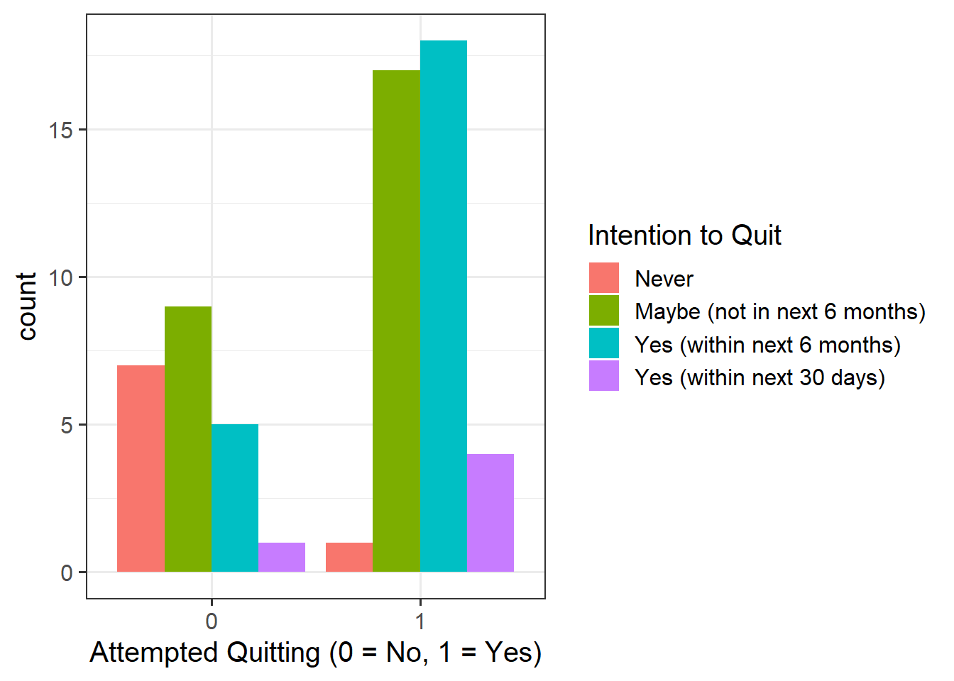 - Read in the QuitAttempts dataset into R, assigning it to an object named