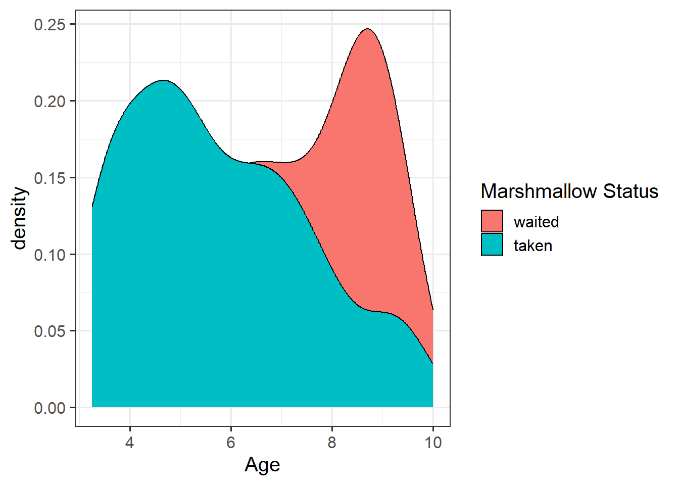 In this lab you will be presented with the output from a statistical analysis, and your job will be to write-up and present the results. We’re going to use a simulated dataset based on a paper (the same that you have worked on in lectures this week) concerning delayed gratification and age.
