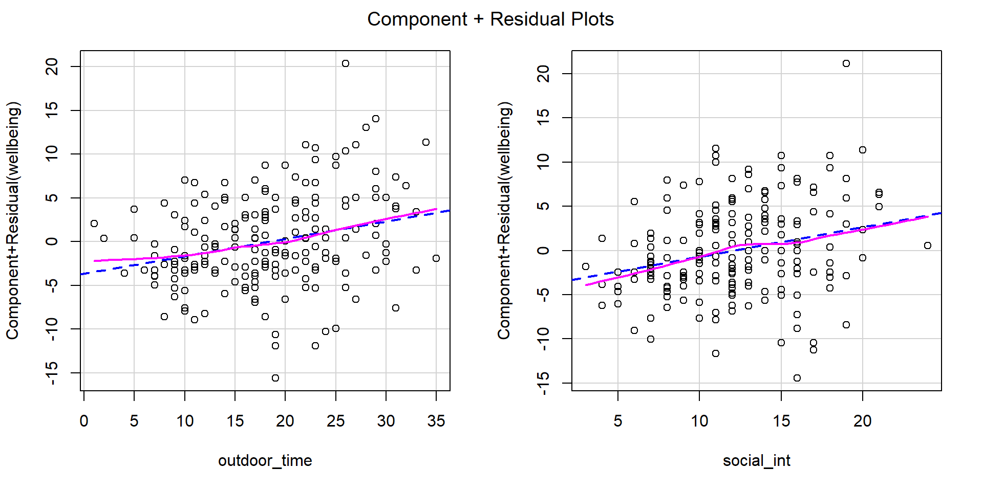 - Multiple predictors: Use component-residual plots (also known as partial-residual plots) to check the assumption of linearity