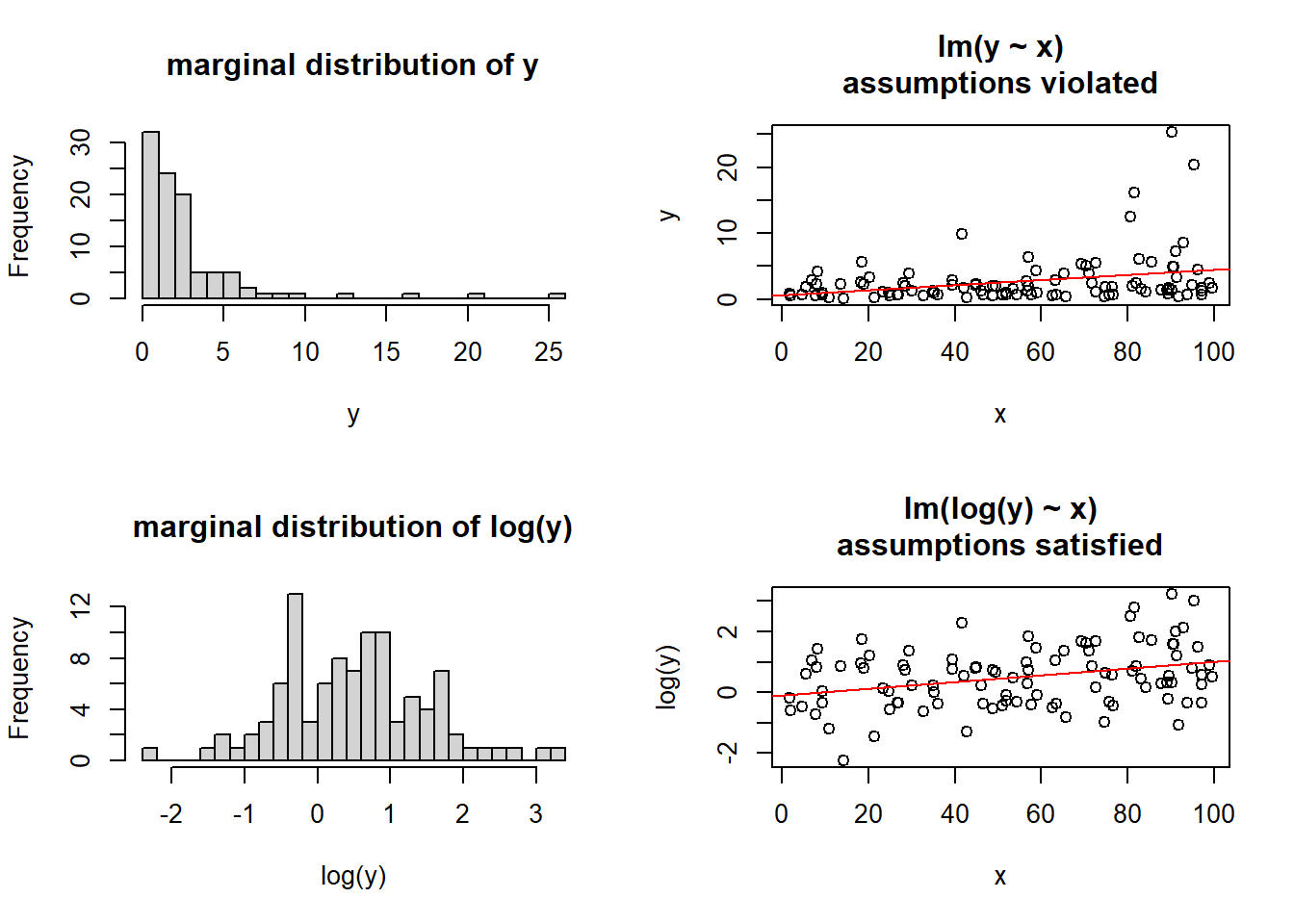 Linear models rely on numerous underlying assumptions about the data. These assumptions ensure that the association between variables is appropriately captured, and that inferences drawn from the model are accurate and valid. Model diagnostics can help further assess whether these assumptions hold. When these assumptions are violated, there are numerous techniques that can be employed, such as through data transformations or using robust alternatives, to ensure reliable model interpretations.