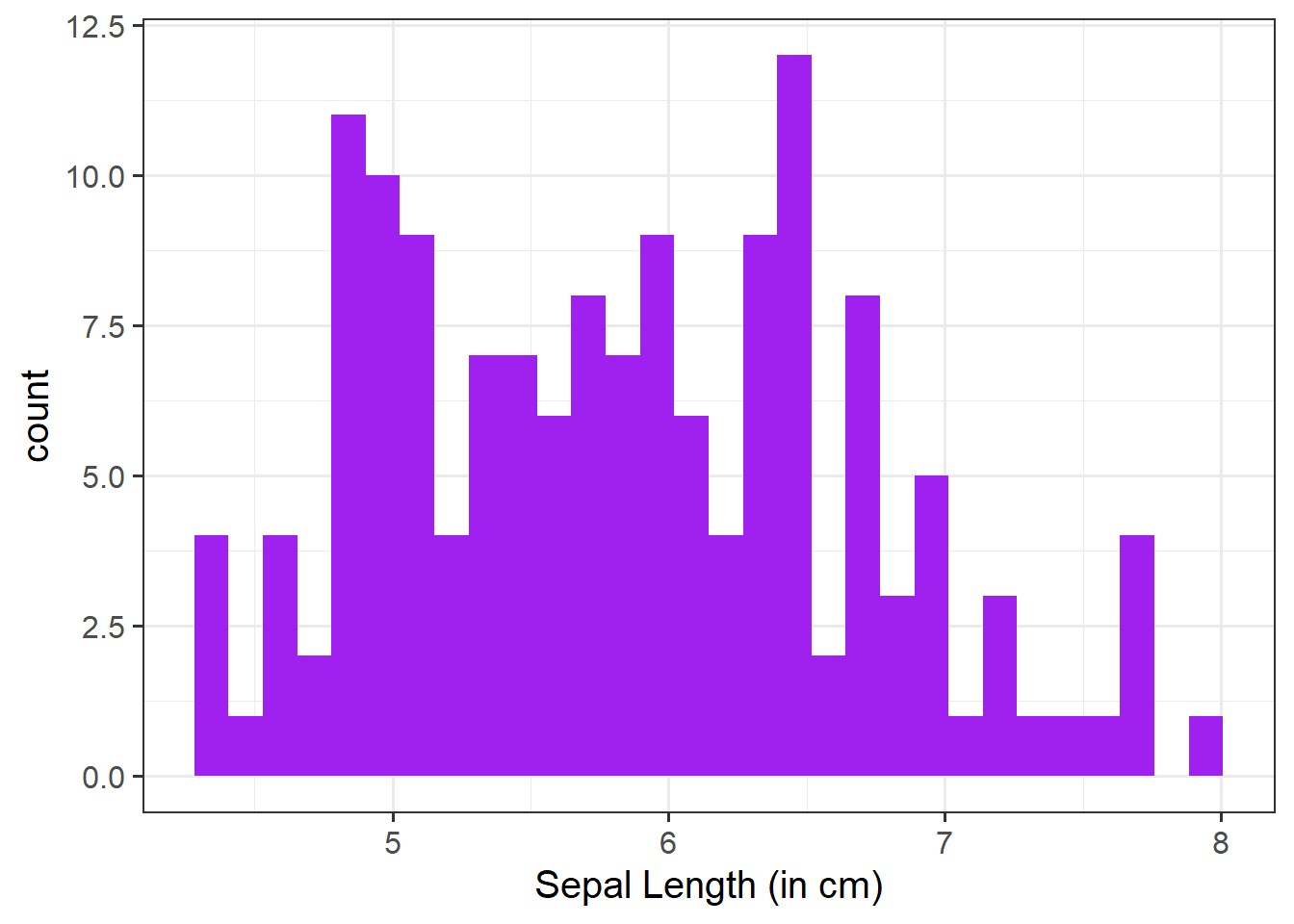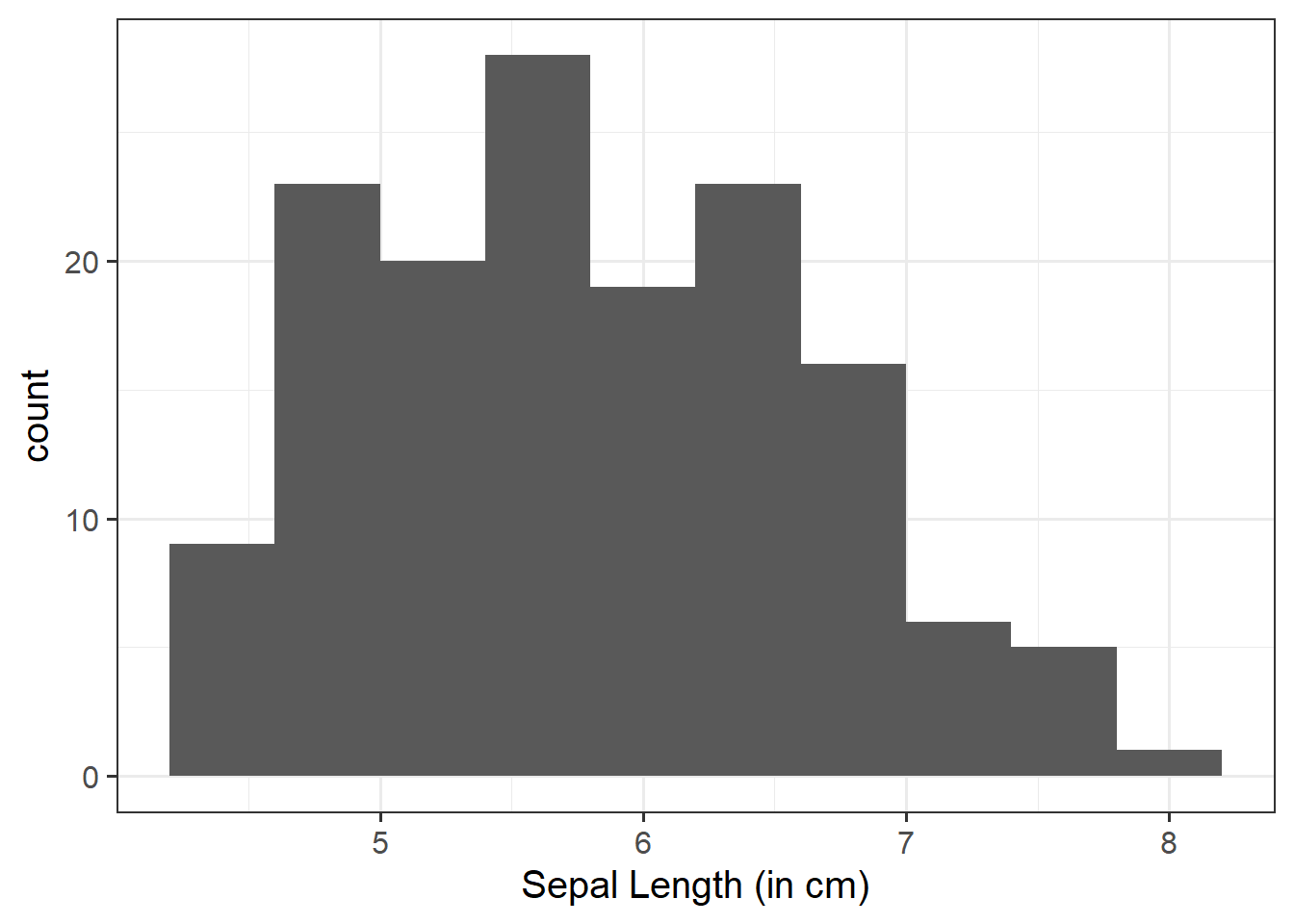 You could use, for example, geom_density() for a density plot or geom_histogram() for a histogram to comment on and/or examine: