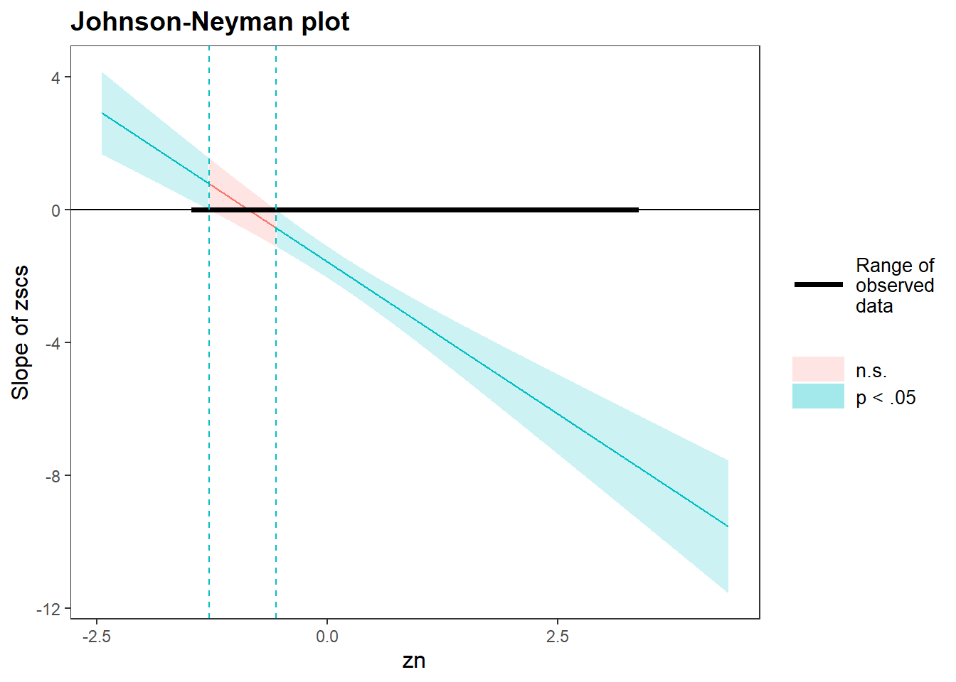 Using the probe_interaction() function from the interactions package, visualise the interaction effects from your model.