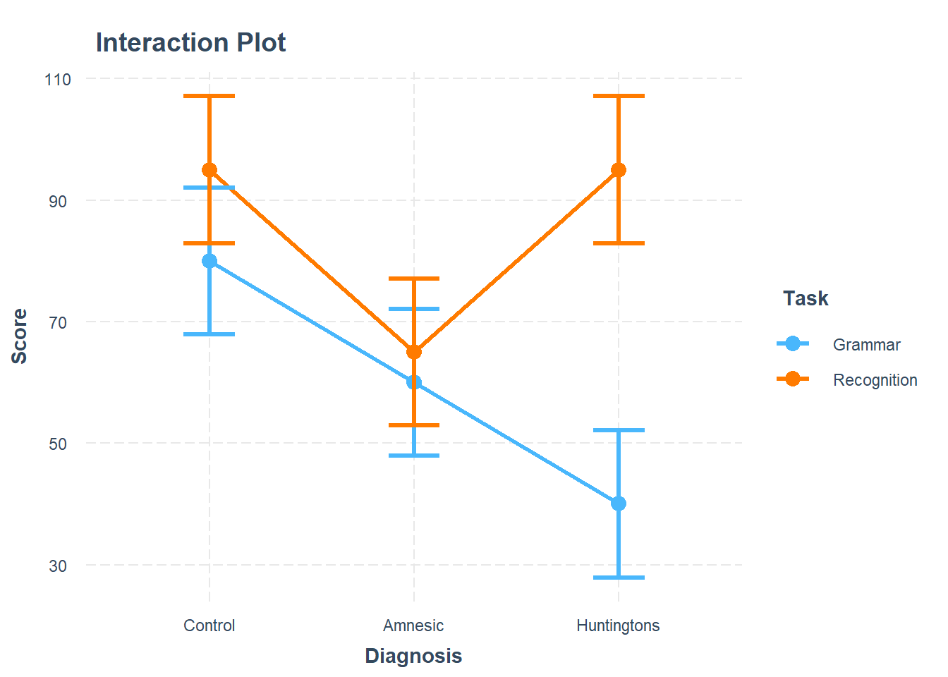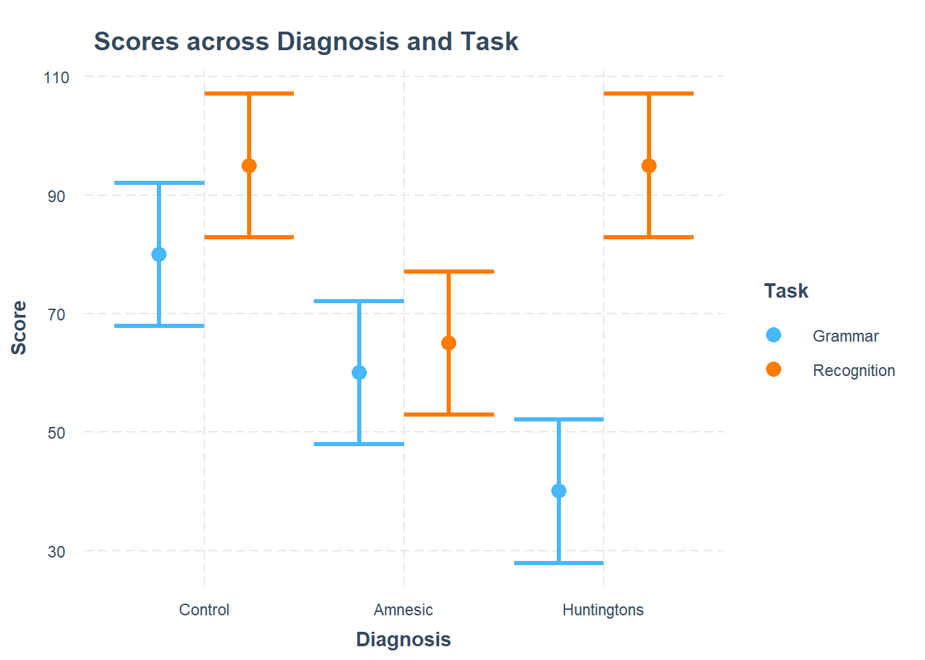 Choose appropriate reference levels for the Diagnosis and Task variables.