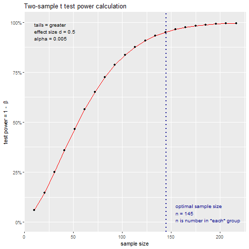 The University of Edinburgh ] --- # Weeks Learning Objectives - Recap the concept of statistical power - Introduce power analysis for study planning - Differentiate analytic from simulation based power calculations - Introduce `R` tools for both analytic and simulation power calculations --- # What is power? <img src="figs/ht-errors-table-2.png" width="80%" /> --- # What is power? - Power depends on: - Sample size `\((n)\)` - Effect size (i.e. an alternative hypothesis) - Significance level ( `\(\alpha\)` ) --- # Power and sample size - In planning, power analysis often boils down to understanding what sample size is big enough for a study - What is big enough? - It depends! - On the study design, the sample characteristics, the expected effect size, the desired level of precision, the costs and benefits of different results… - Power analysis can help us to work out how much data we should collect for our studies --- # Why is power important? - So you don't waste your time - So you don't waste other people's time - So you can answer the question(s) you're interested in --- # Analytic power analysis - Analytical solutions essentially just take known numbers; - `\(\alpha\)`, - power, - `\(n\)`, and - effect size - ...and solve for an unknown number - These four variables relate to each other in a way that means each one *"is a function of the other three"* (Cohen, 1992, p. 156). --- # Analytic power analysis - If you have an... - effect size of interest, a chosen alpha level and a planned sample size - you can calculate the statistical power of your planned study - If you have an... - effect size of interest, a chosen alpha level and a chosen statistical power level - you can calculate the required sample size of your planned study --- # Power by simulation - For complex designs, simulation can be used to estimate power. - If enough simulations are conducted, simulation-based estimates of power will approximate estimates of power from analytical solutions. - Why is it needed? - sometimes the analytic solutions are not accurate --- # The power of what? - People commonly talk about underpowered studies - This is not strictly true - What we are conducting our power analysis on, is a particular combination of design, statistical test, and effect size - yes, these are elements of the study, but it is not *the* study itself - Read more [here](https://towardsdatascience.com/why-you-shouldnt-say-this-study-is-underpowered-627f002ddf35) --- # Post-hoc power - Often researchers are asked to calculate power **after they have collected data** - This is referred to as post-hoc or observed power analysis - It does not use a anticipated effect size, but the effect size you observed from your data - It is meaningless - Consider a definition of power (bold added): > "The power of a test to detect a correct alternative hypothesis is the **pre-study probability** that the test will reject the test hypothesis (e.g., the probability that P will not exceed a pre-specified cut-off such as 0.05)." (Greenland et al., 2016, p. 345) - Read more [here](http://daniellakens.blogspot.com/2014/12/observed-power-and-what-to-do-if-your.html) --- # Conventions - Conventionally, alpha is fixed, most commonly at .05 - A common conventional value for power is .8 - However, both of these conventions are arbitrary cut-offs on continuous scales. - Note that if these conventions are used together, we should expect four times as many Type II errors as Type I errors - It is important to justify your decisions, including the alpha., effect size and power levels you choose (see Lakens et al., 2017) --- # Analytic power in R - Let's use an an independent samples t-test before briefly looking at the functions for correlation and linear model - In our imaginary study, we will compare the high striker scores of two population-representative groups: - one that has not undergone any training and - one that has taken an intensive day-long high striker training course - We hypothesise that the training group will have higher scores. --- # Analytic power in R - To begin, let's work with typical sample and effect sizes. - The median total sample size across four APA journals in 2006 was 40 (Marsazalek, Barber, Kohlhart, & Holmes, 2011, Table 1). - A Cohen's `\(d\)` effect size of 0.5 has been considered a medium effect size (Cohen, 1992, Table 1). We can plug these values in and work out what our statistical power would be with them if we use the conventional alpha level of .05. - We will use the `pwr` package. ```r library(pwr) pwr.t.test(n = 20, d = 0.5, sig.level = .05, type= "two.sample", alternative = "two.sided") ``` --- # Analytic power in R ```r pwr.t.test(n = 20,d = 0.5, sig.level = .05, type= "two.sample", alternative = "two.sided") ``` ``` ## ## Two-sample t test power calculation ## ## n = 20 ## d = 0.5 ## sig.level = 0.05 ## power = 0.337939 ## alternative = two.sided ## ## NOTE: n is number in *each* group ``` - Our power is only .34! - So if there is a true standardised effect of .5 in the population, studies with 20 participants per group should only expect to reject the null hypothesis about 34% of the time. --- # Analytic power in R - But this wasn't the appropriate power analysis - We have a directional hypothesis - we think they will score *higher* than the non-training group ```r pwr.t.test(n = 20, d = 0.5, sig.level = .05, type= "two.sample", * alternative = "greater") ``` ``` ## ## Two-sample t test power calculation ## ## n = 20 ## d = 0.5 ## sig.level = 0.05 ## power = 0.4633743 ## alternative = greater ## ## NOTE: n is number in *each* group ``` - Our power for a one-sided test is about .46. --- # Analytic power in R - Instead of computing the power given a sample size of 20 participants per group, let's set the level of power ```r *pwr.t.test(power = 0.95, d = 0.5, sig.level = .05, type= "two.sample", alternative = "greater") ``` ``` ## ## Two-sample t test power calculation ## ## n = 87.26261 ## d = 0.5 ## sig.leve