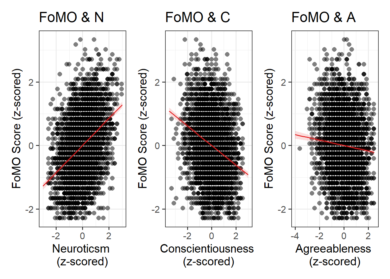 Explore the associations among Fear of Missing Out (FoMO), age, social media networks, and the Big Five personality traits.