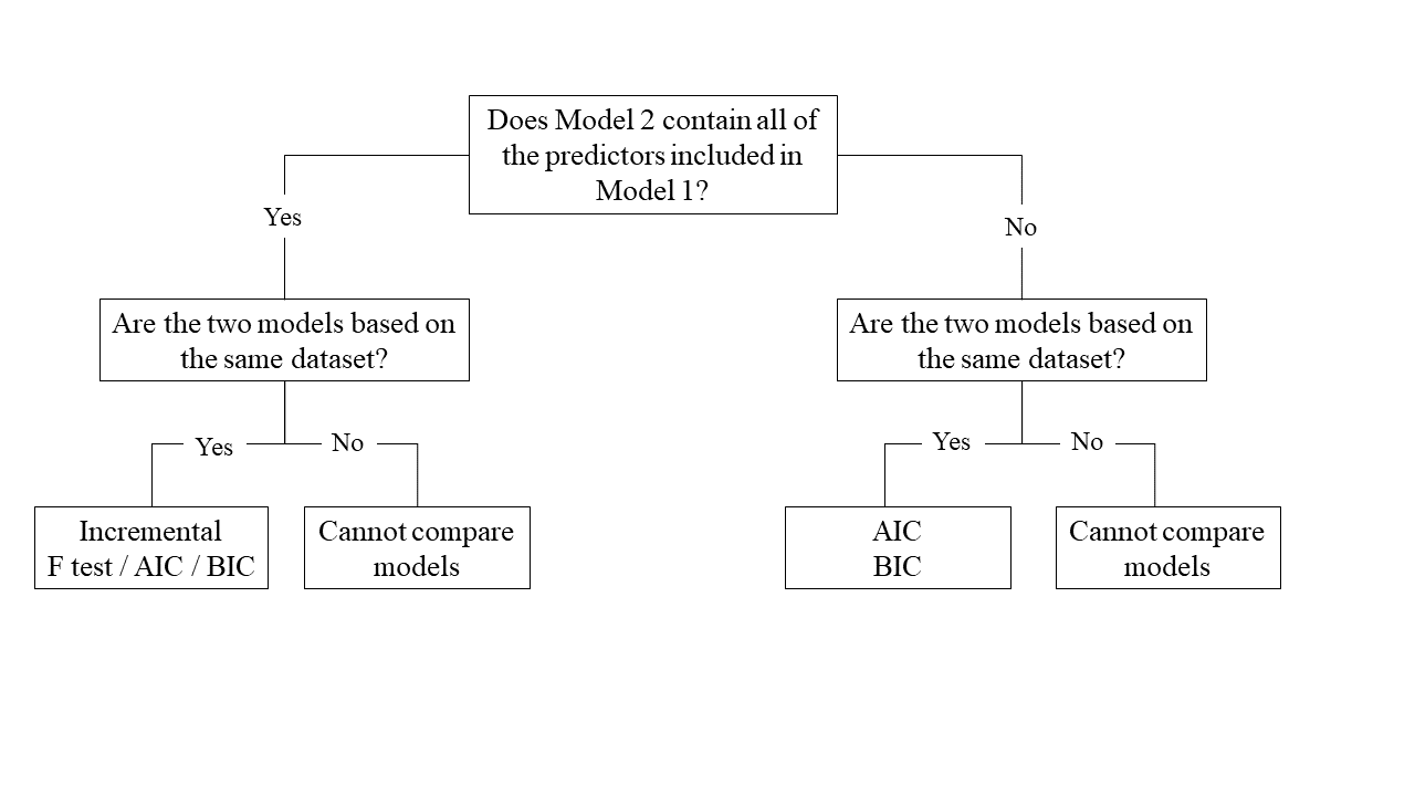 One useful thing we might want to do is compare our models with and without some predictor(s).There are numerous ways we can do this, but the method chosen depends on the models and underlying data: