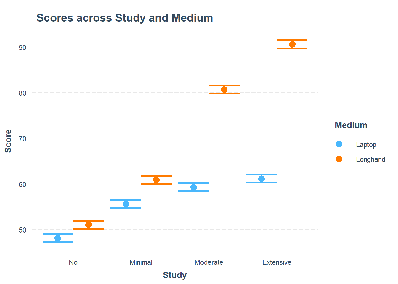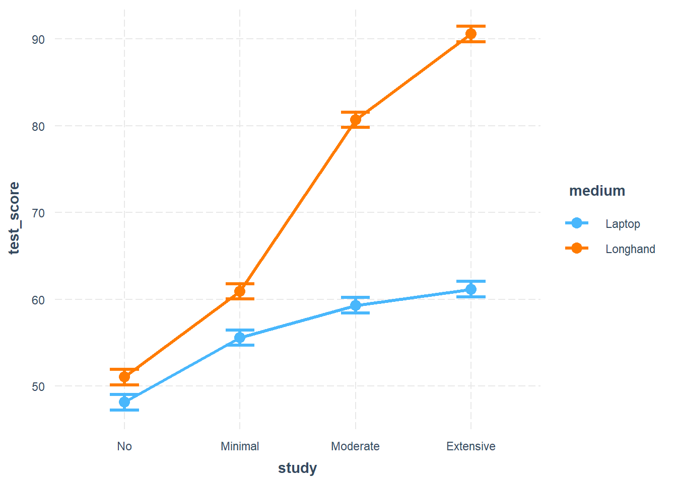 You can download the data required for this lab here or read it in via this link https://uoepsy.github.io/data/laptop_vs_longhand.csv