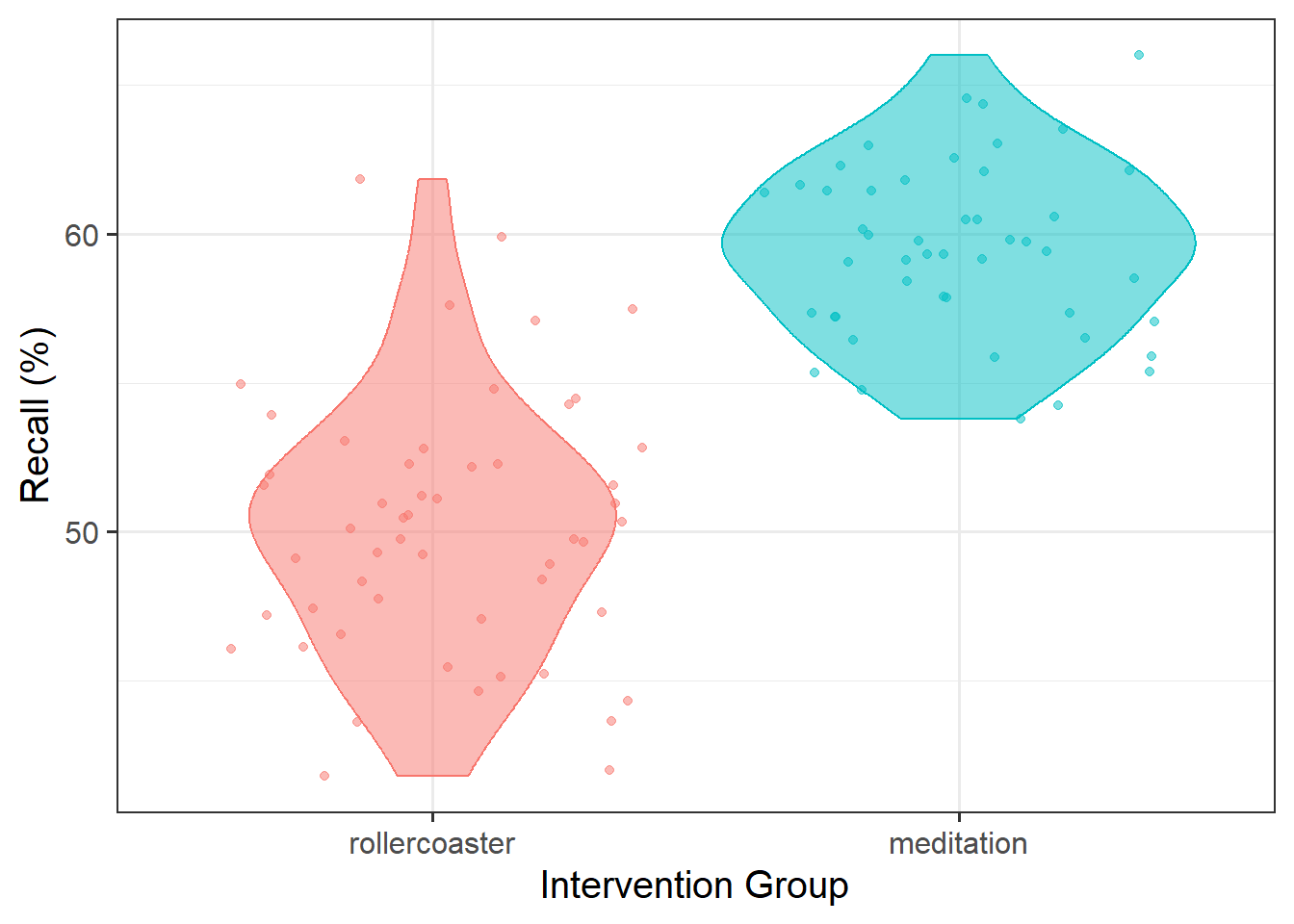 Fit the following model using lm(), and assign it as an object with the name “recall_mdl1”.