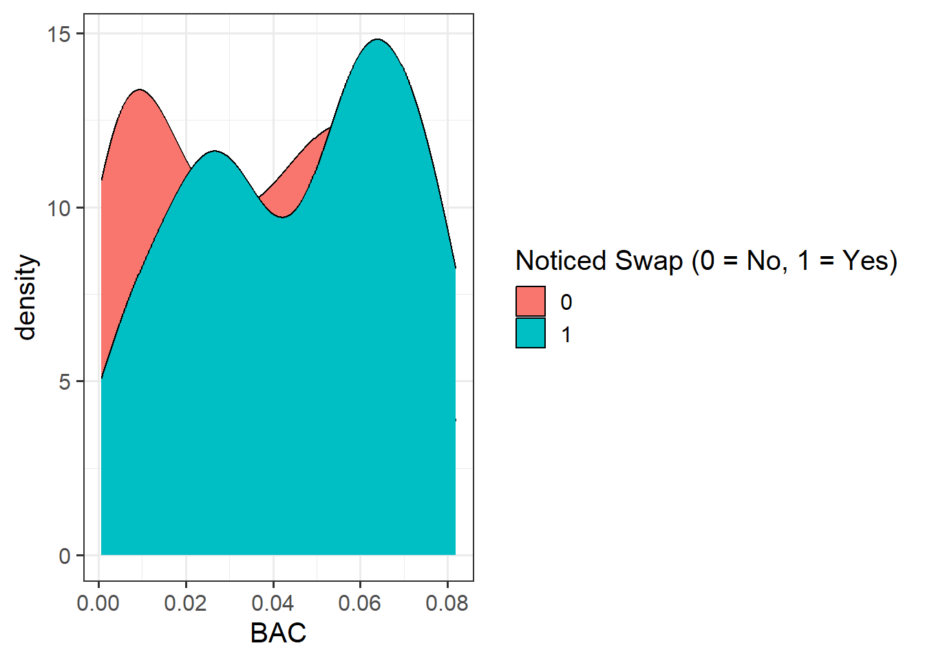 - Do you want BAC on the current scale, or could you transform it somehow? Consider that instead of the coefficient representing the difference when moving from 0% to 1% BAC (1% blood alcohol is fatal!), we might want to have the difference associated with 0% to 0.01% BAC (i.e, a we want to talk about effects in terms of changing 1/100th of a percentage of BAC)