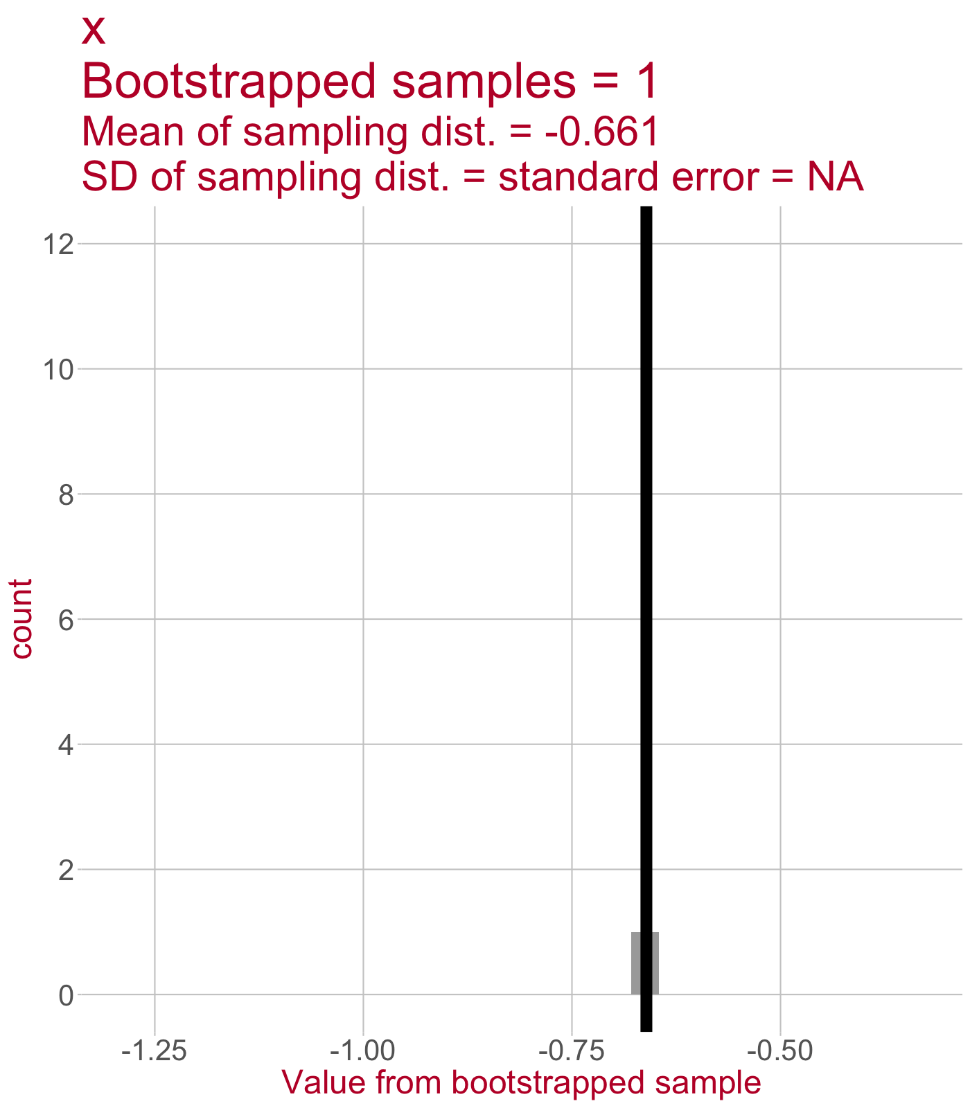 \(\leftarrow\) This sampling distribution consists of every slope value estimated by a linear model that was fit to a bootstrapped sample of data.