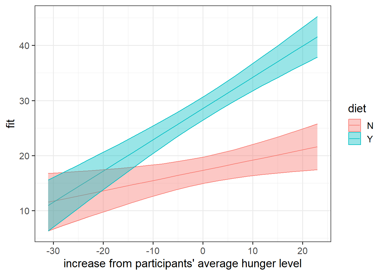 data = hangry)Always plot your data! It’s tempting to just go straight to interpreting coefficients of this model, but in order to understand what a model says we must have a theory about how the data are generated.