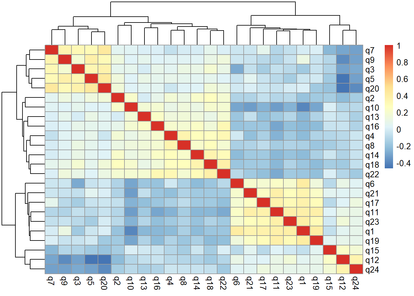 Our task is to use the dimension reduction techniques we learned about in the lecture to help inform how to organise the items she has developed into subscales.