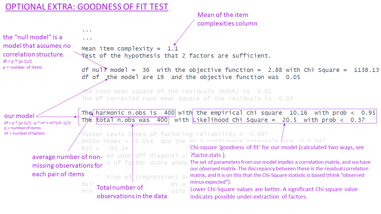 Overall KMO is good here at 0.83, and individual item KMOs are also looking pretty ‘meritorious’ too! The only thorny one is item9, again!