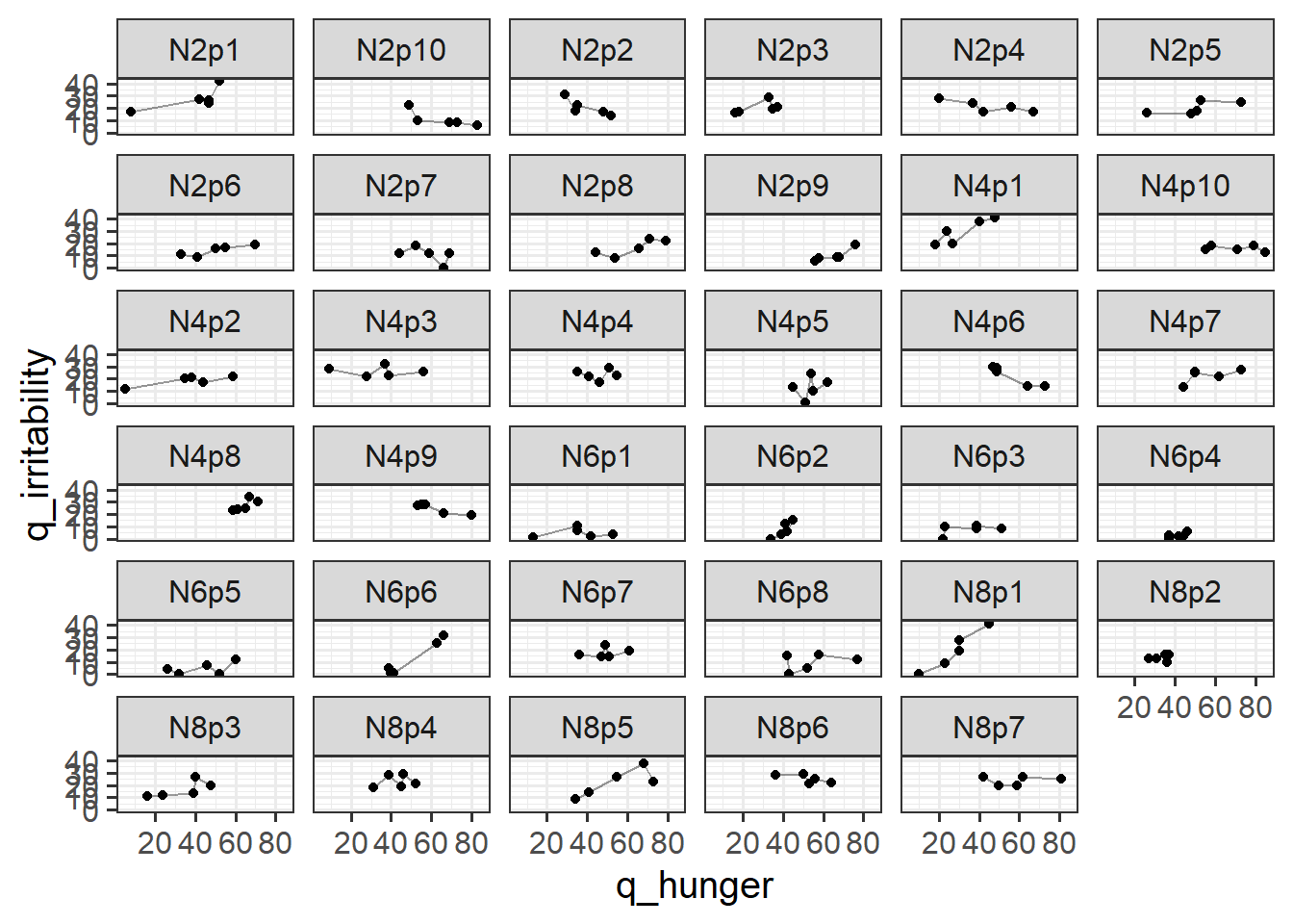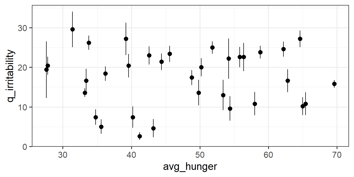 Remember that what we’re interested in is “whether levels of hunger are associated with levels of irritability (i.e.,”the hangry hypothesis”)“.