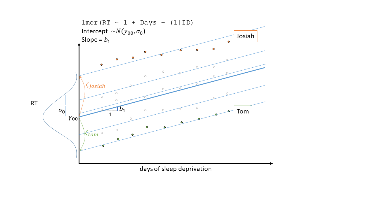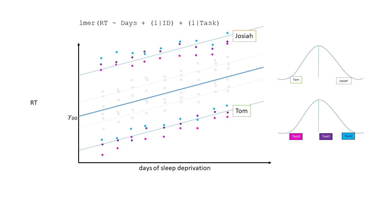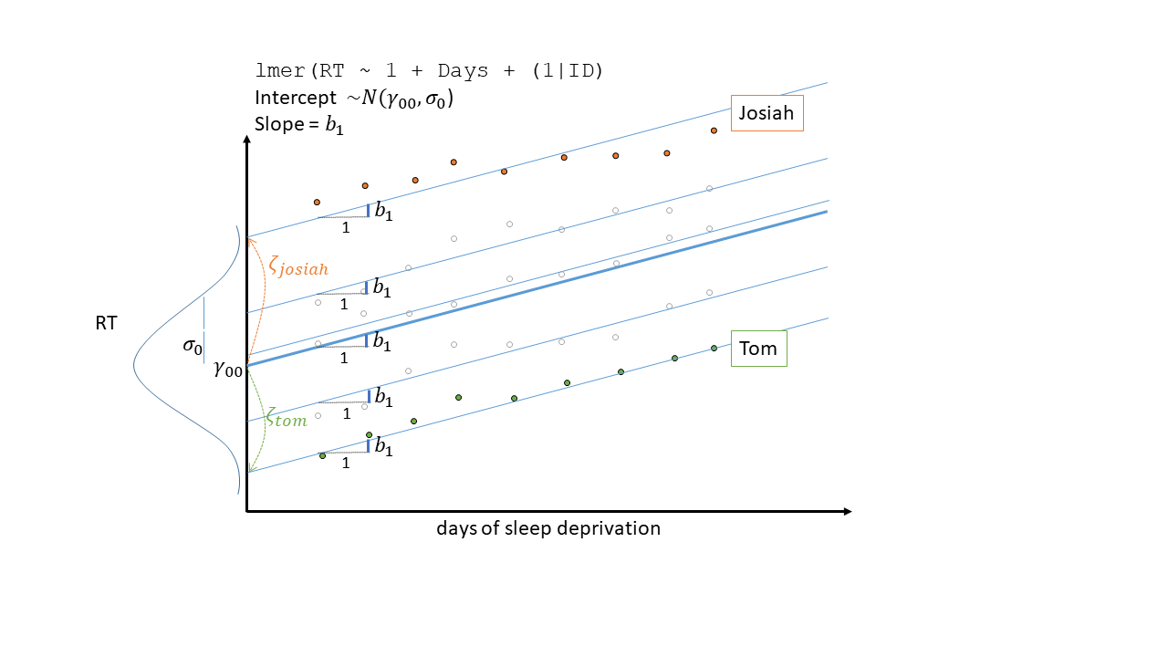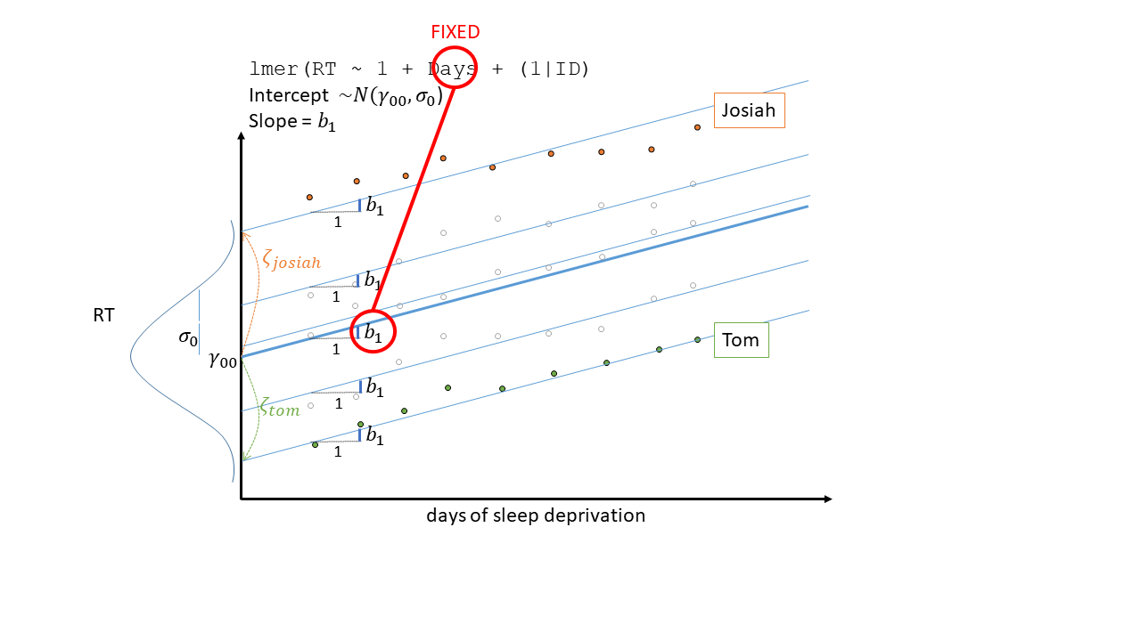 (g)lmer(outcome ~ fixed effects + (random effects | grouping structure), family = …)