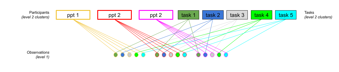 x is the thing we’re interested in!“Ultimately, the random effect structure one uses in an analysis encodes the assumptions that one makes about how sampling units [e.g. participants] vary, and the structure of dependency that this variation creates in one’s data.”