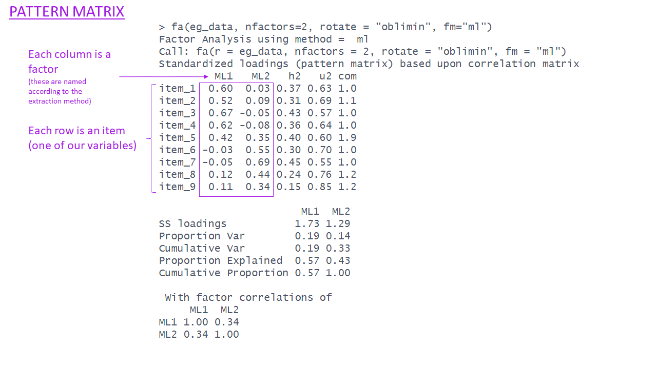 When we have an obliquely rotated solution, we need to draw a distinction between the pattern and structure matrix.