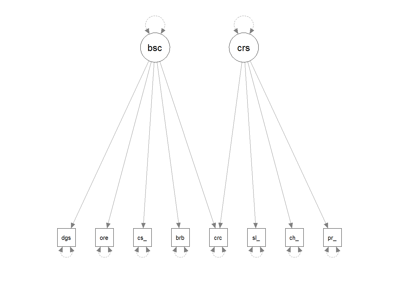 | (residual) (co)variance | ~~ |