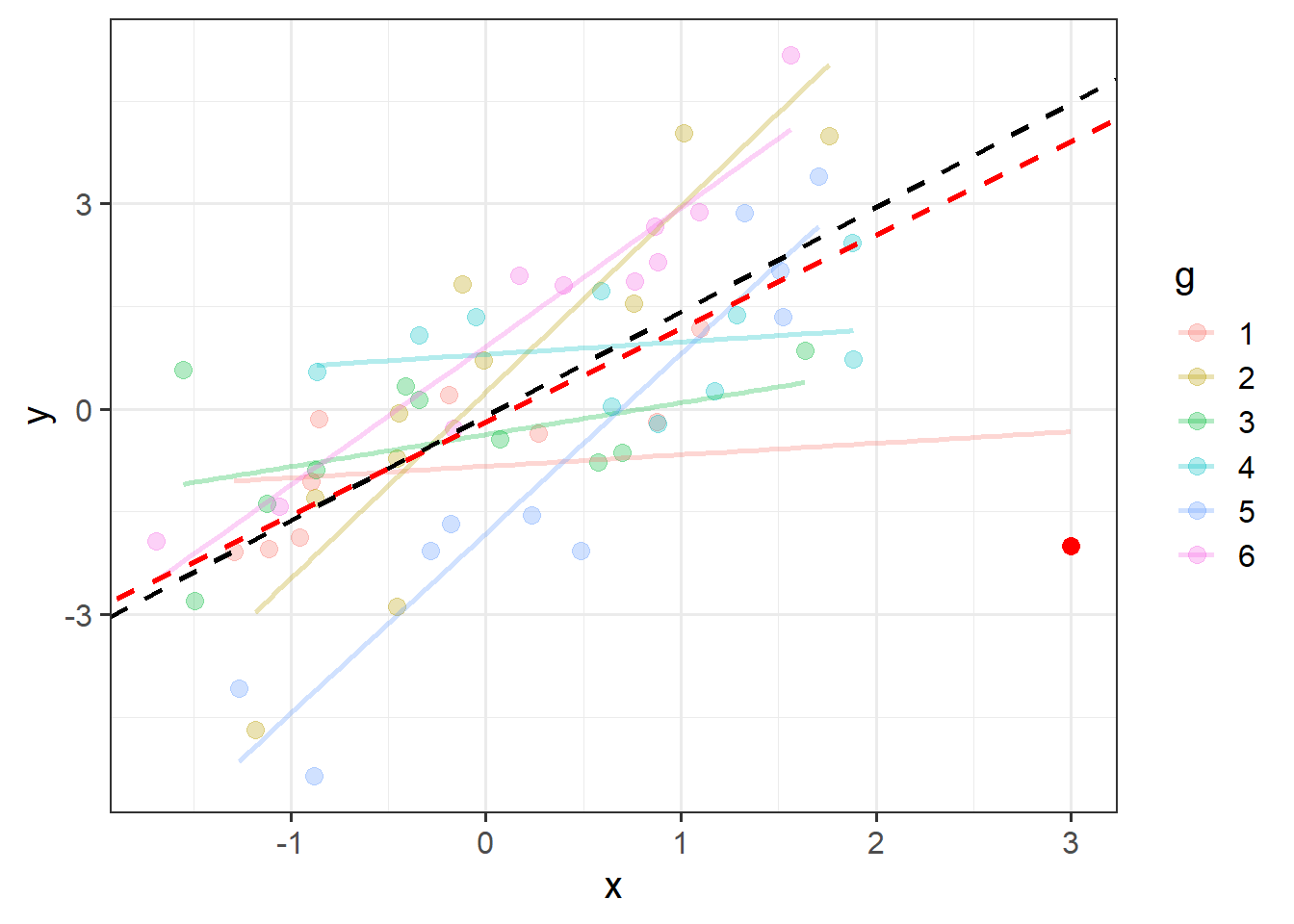An individual observation might influence our model (as in Figure 2), but so might an entire cluster (Figure 3).