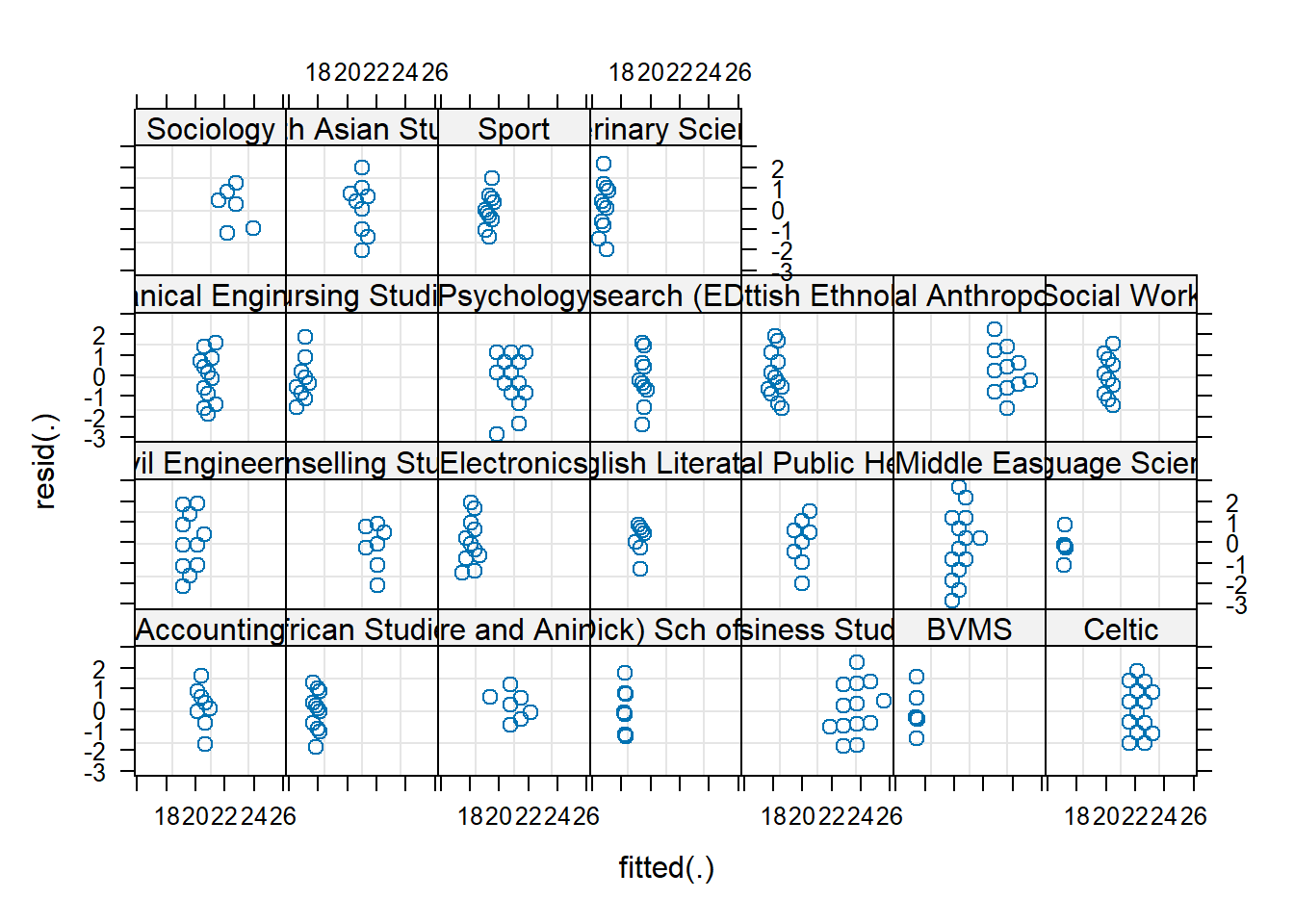 form = resid(.) ~ fitted(.) | dept,