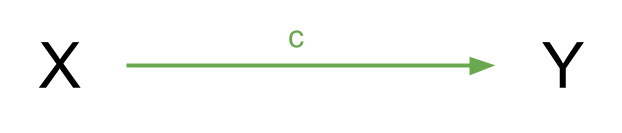 If we have a variable \(X\) that we take to ‘cause’ variable \(Y\), then our path diagram will look like Figure 8, which path \(c\) is the total effect. This is the unmediated effect of \(X\) on \(Y\).