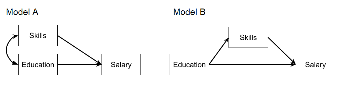Fit a path model in which education has an effect on salary both directly and indirectly, via its influence on the skills obtained.