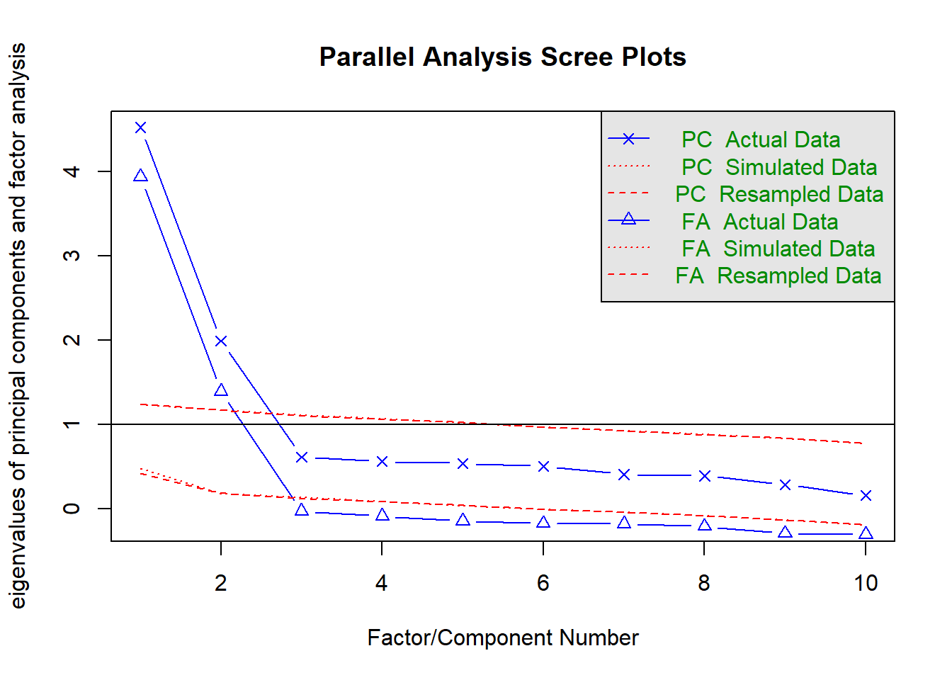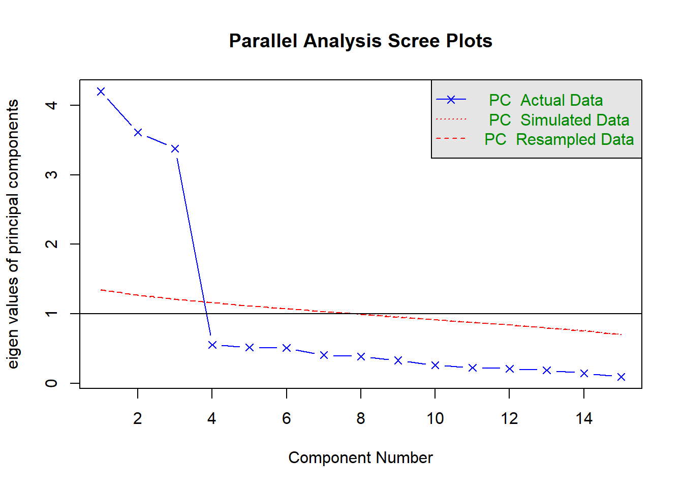 Parallel analysis suggests that the number of factors = NA and the number of components = 3