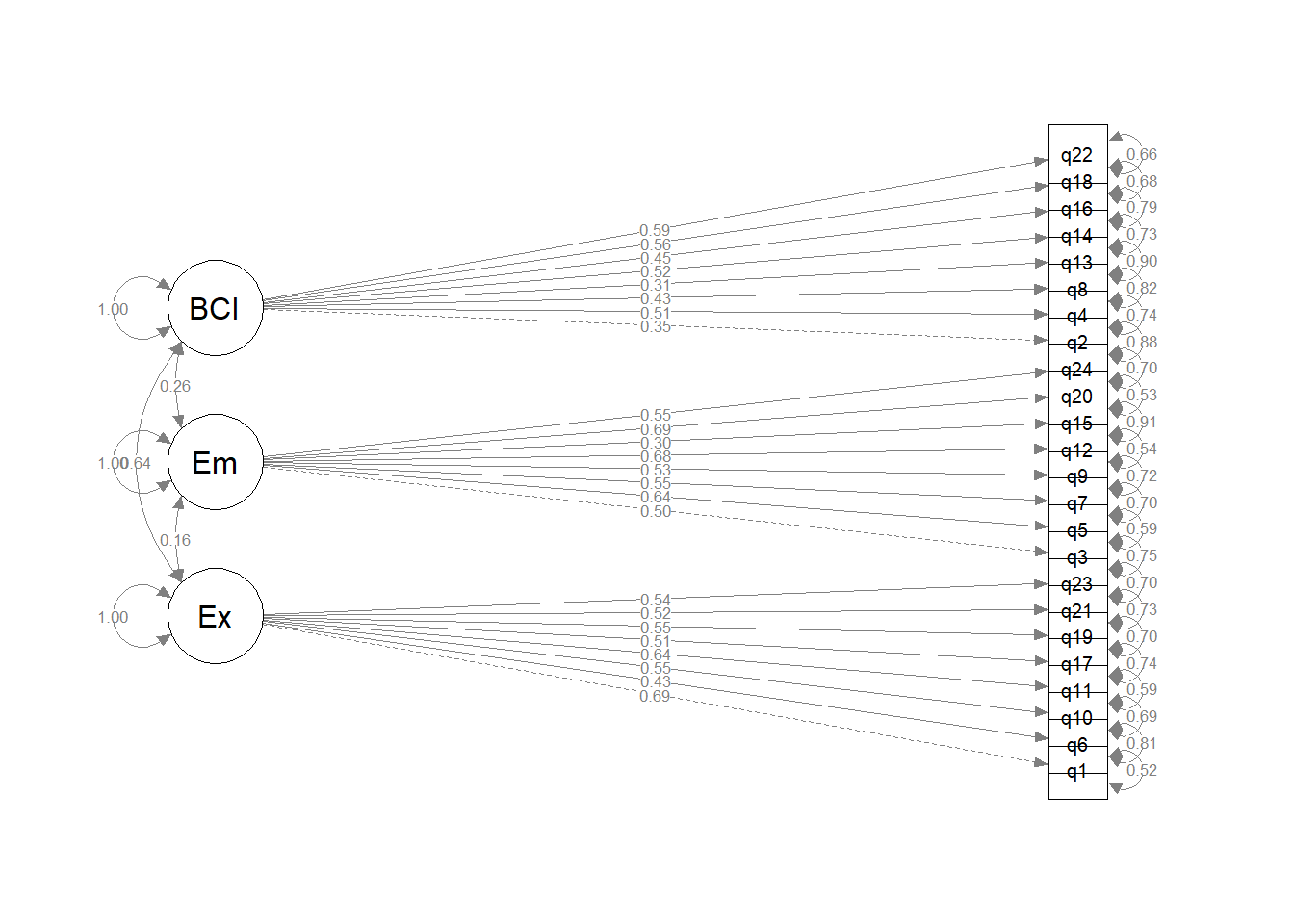 Make a diagram of your model, using the standardised factor loadings as labels.