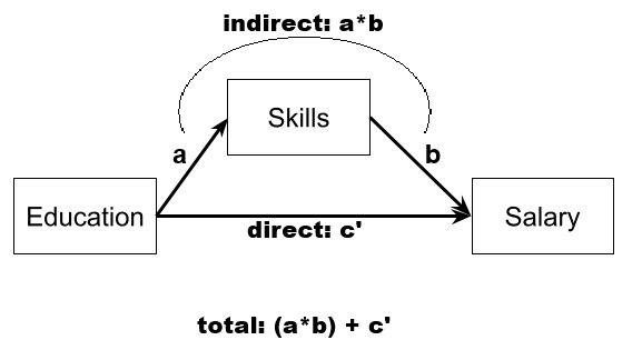 Is the association between education and salary mediated by skills? What proportion of the effect is mediated?