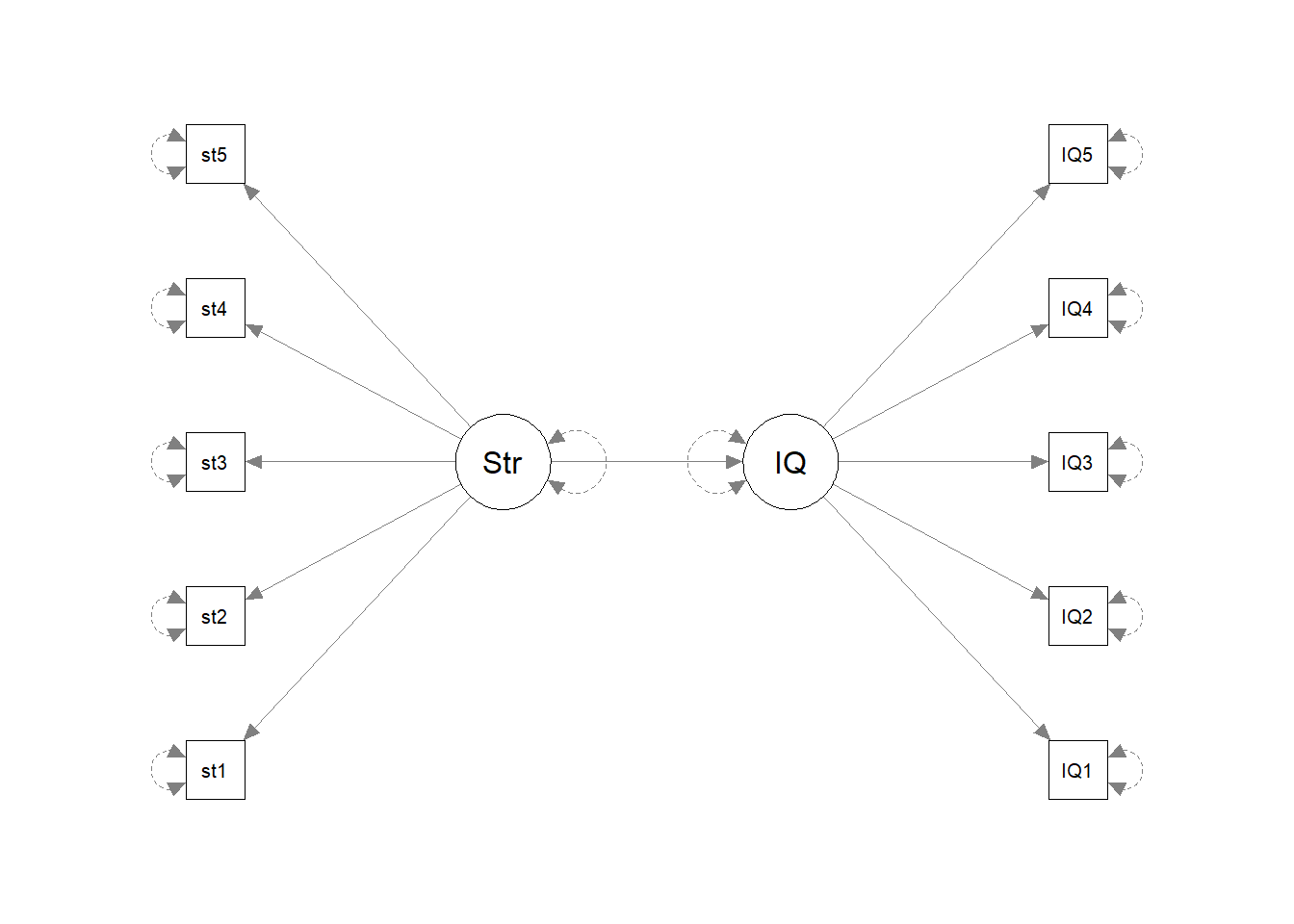 Remember: We know that IQ indicators are non-normal, so we would like to use a robust estimator (e.g. MLR). And the Stress indicators are only on a 3-point scale, so we want to make sure we specify that too. However, as lavaan will tell you if you try using estimator="MLR" at the same time as ordered = c(....), the MLR estimator is not supported for ordered data. It suggests instead using the WLSMV (weighted least square mean and variance adjusted) estimator.