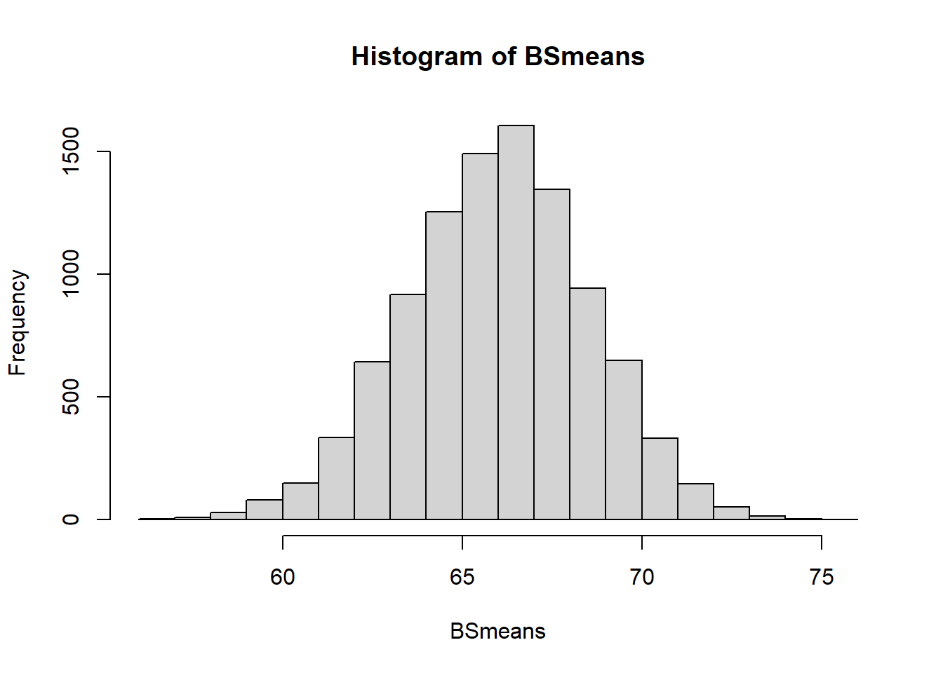 bootstrap_means <- replicate(1000, mean(sample(observed_sample, replace = TRUE)))- Create an object that contains the 10,000 means from 10,000 resamples of our sleep ratings.