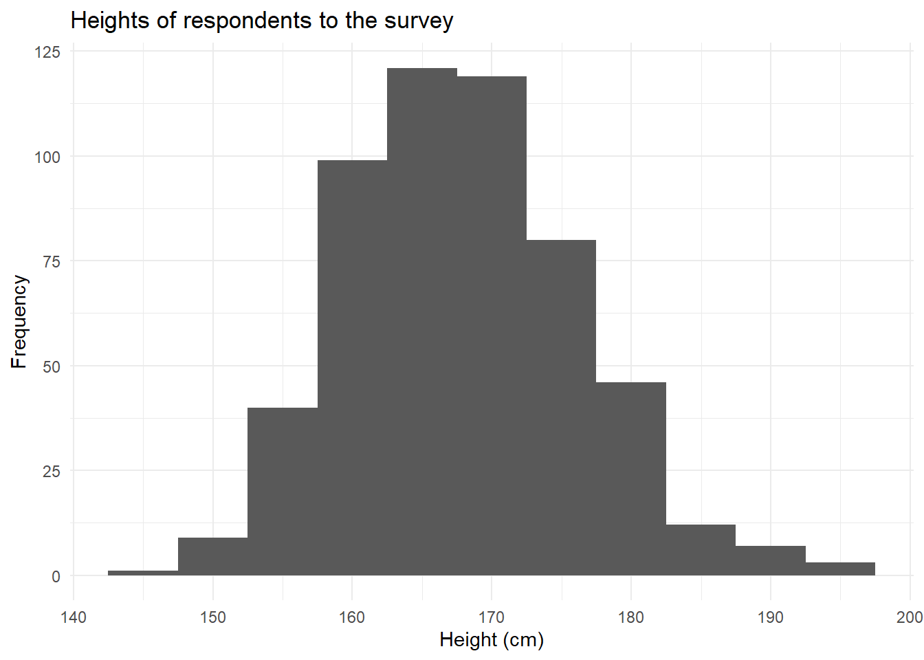 Plot the distribution of heights of all respondents. Try to make it ‘publication ready’.
