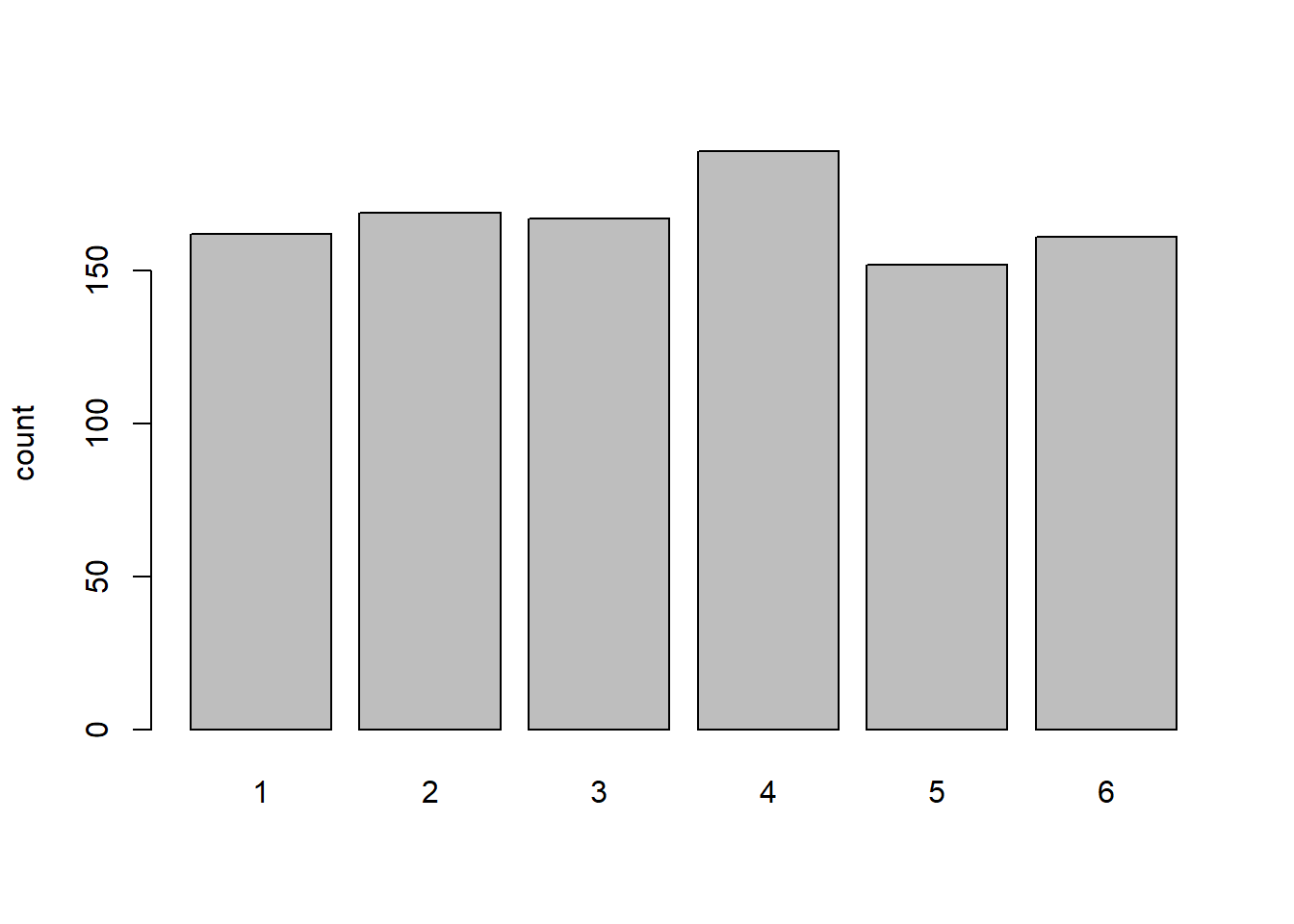 Think about the barplots we have been looking at in the exercises where we simulate dice rolling :