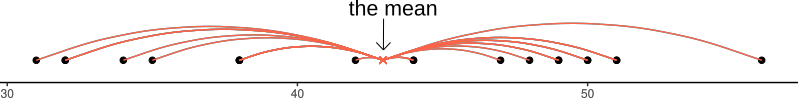 When we have sampled some data, we denote the mean of our sample with the symbol \(\bar{x}\) (sometimes referred to as “x bar”). The equation for the mean is: