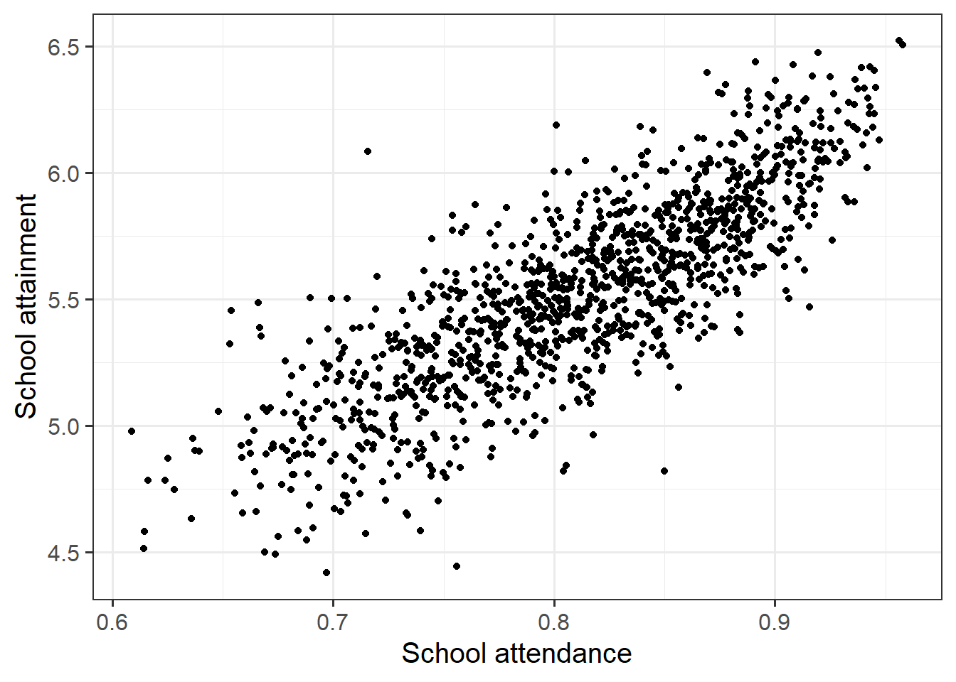 Conduct a test of whether there is a correlation between school attendance and school attainment in Scotland.
