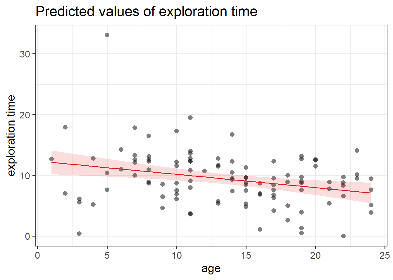 Visualise and describe the relationship between age and exploration-time among the monkeys in the sample.