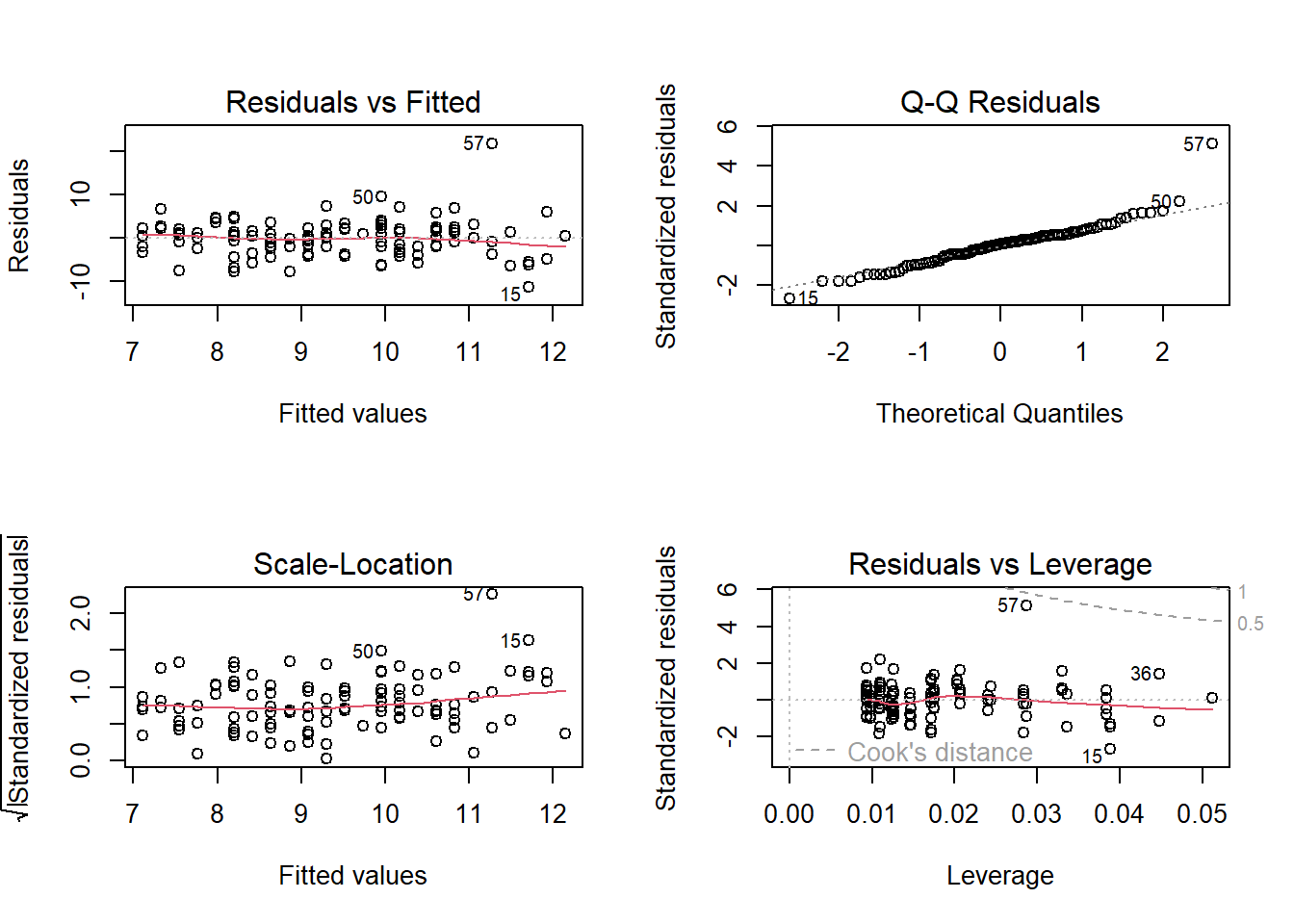 - The trick to looking at assumption plots in linear regression is to look for “things that don’t look random”.