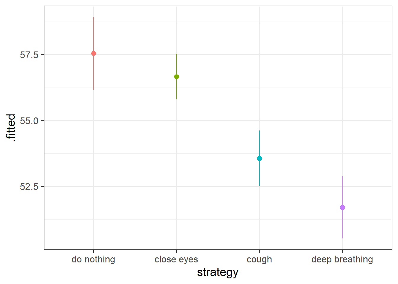 ggplot(aes(x=strategy,y=.fitted, col=strategy))+