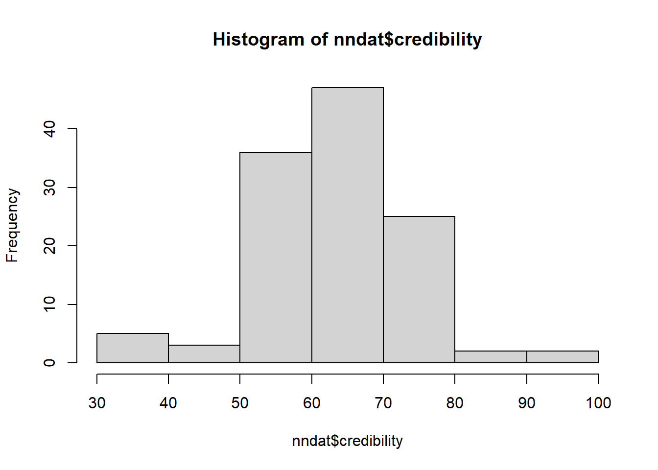120 participants took part in the study. Participation involved reading a short article about some research in neuroscience, and then rating how credible they found the research. Participants were randomly placed into one of three conditions, in which the article was presented a) in text alone, b) with a picture of a brain, or c) with a picture of a brain and a fancy looking (but unrelated to the research) graph. They rated credibility using a sliding scale from 0 to 100, with higher values indicating more credibility.