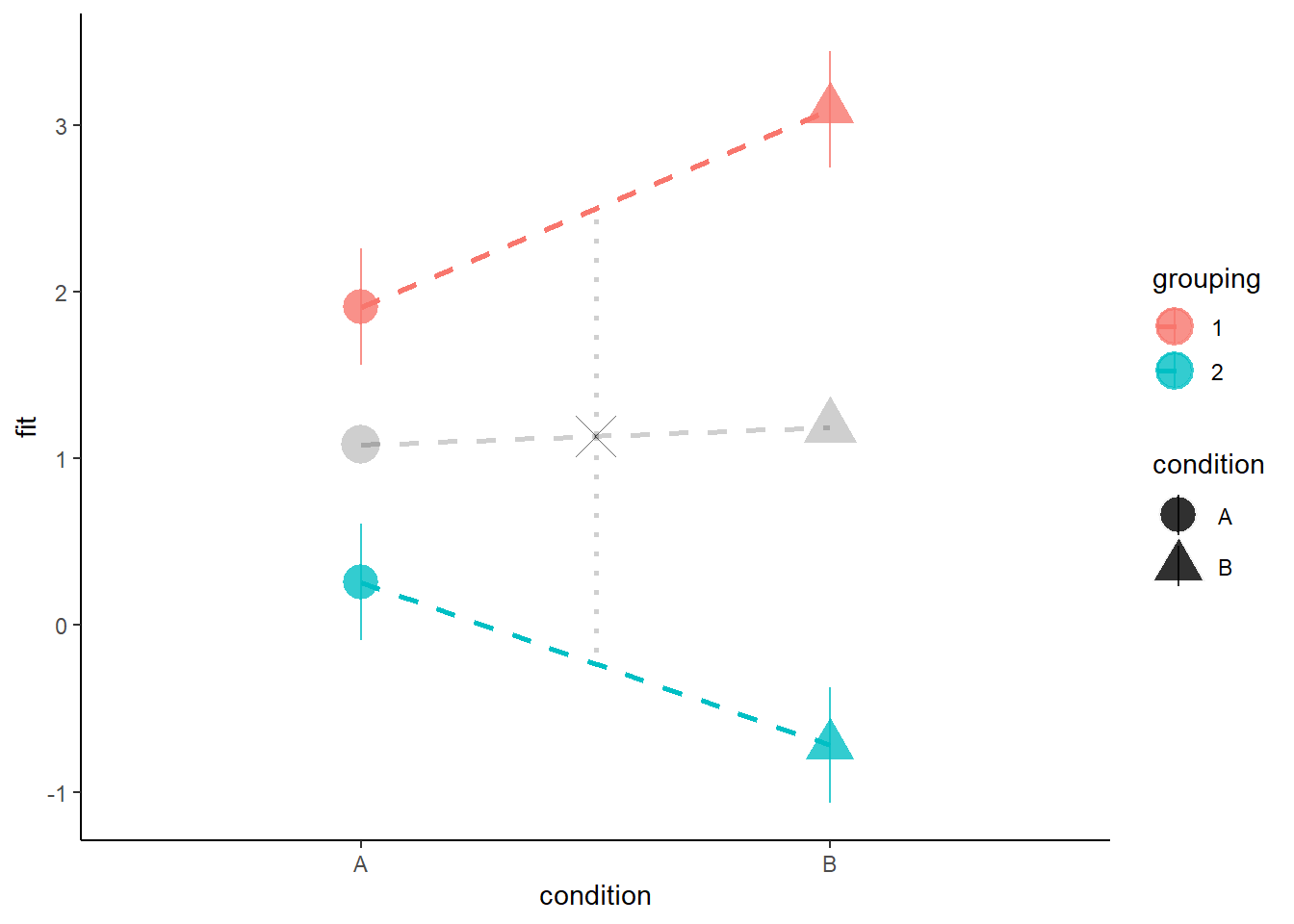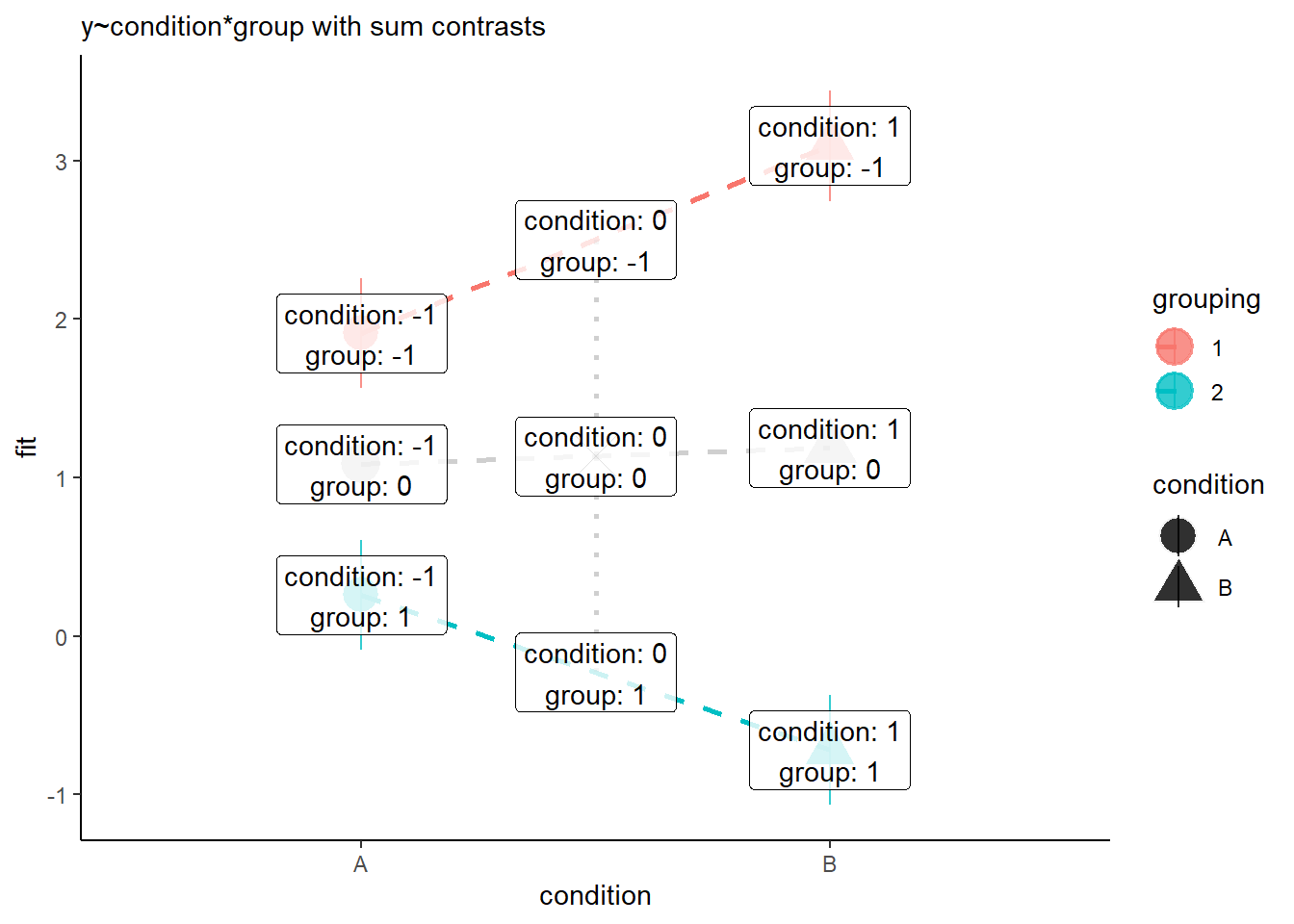 - The coefficient for condition is the difference between the grey X and the grey triangle in Figure 8.