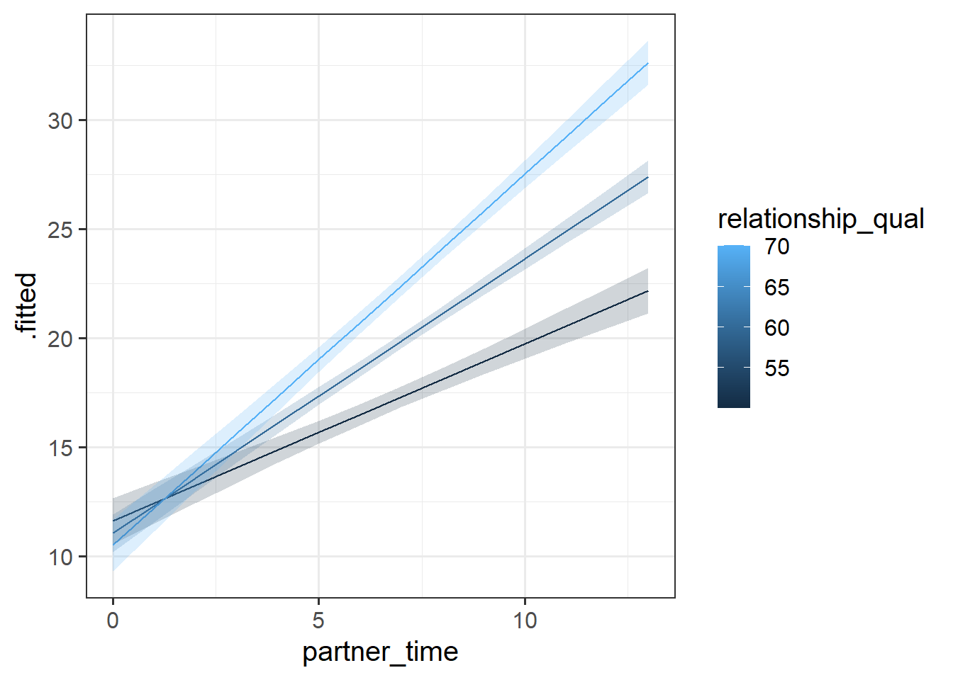 To capture this, what we need is an extra bit of information to tell us “how much does the association between ‘time spent with partner’ and wellbeing change as relationship quality changes?” And this is something we can include in our model, and get an estimate for!